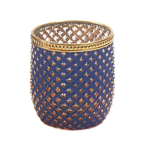 Dominion Purple Glass Candleholder **|**|** Glittering diamonds of light will enchant your room when you light a candle inside this exotic glass holder. Trimmed with golden metal, this patterned candle cup is the key to refined style and worldly flair.Description Details Item weight: 0.1 lb.Product Dimensions: 3-1/2 diameter x 3-3/4" high.Product Material: Glass and iron.UPC Code: 849179021221.Packaging: 1 EA"