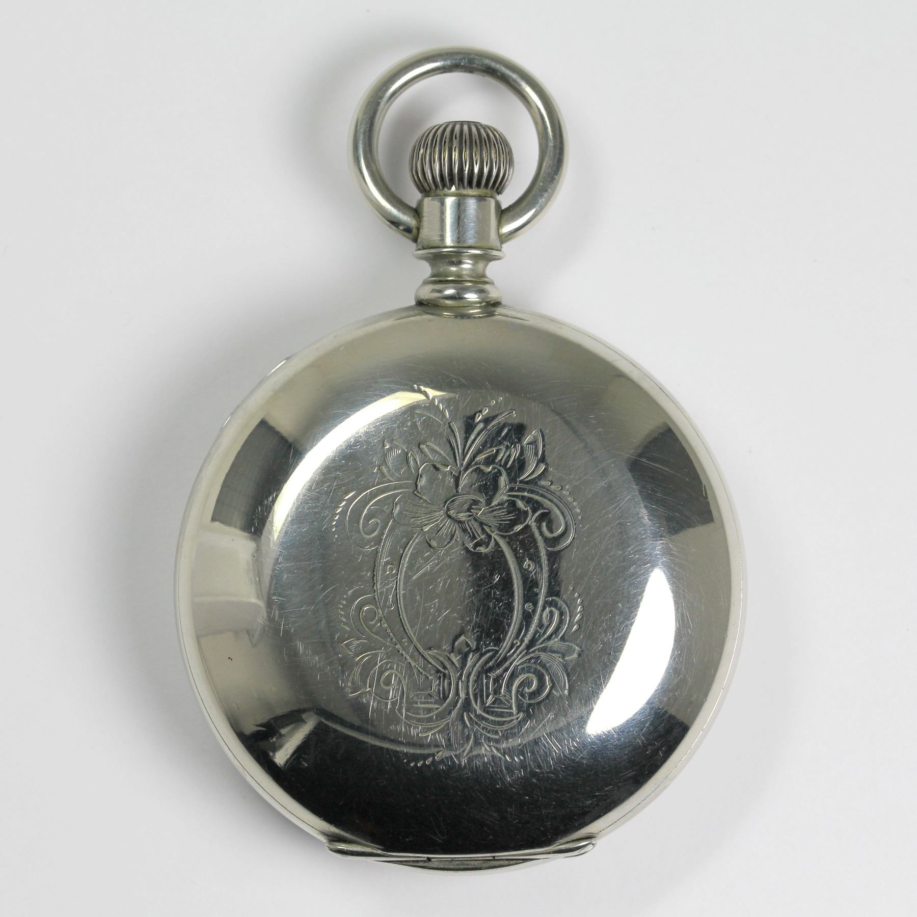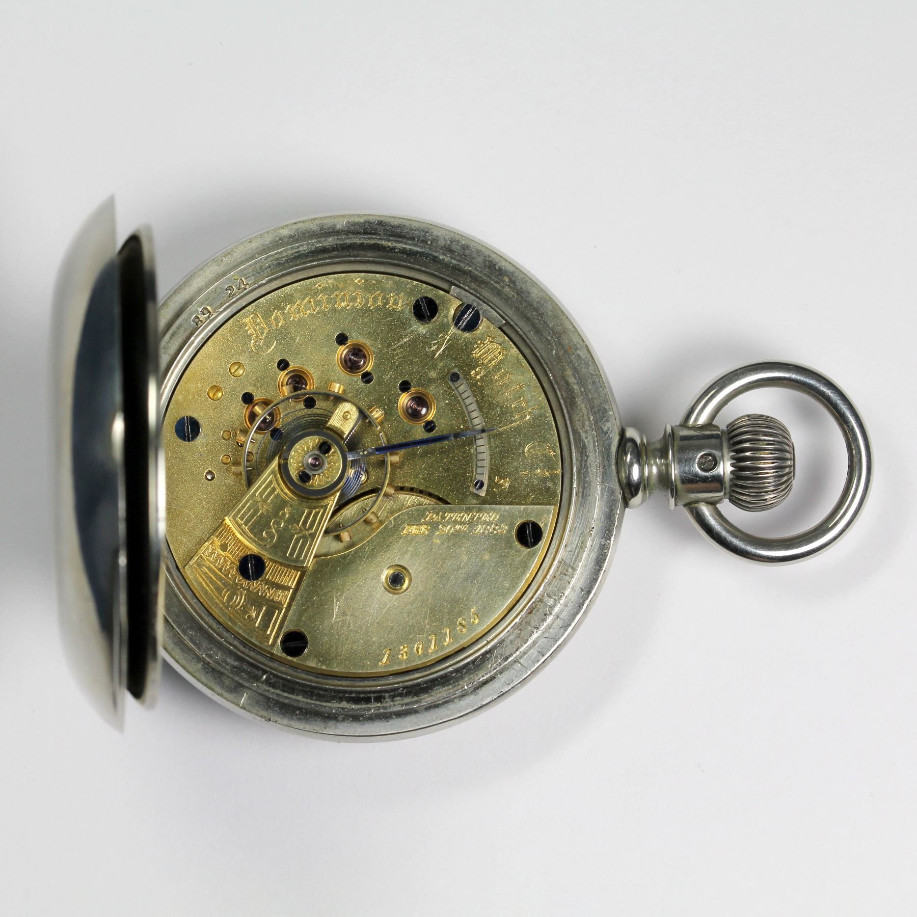 Swiss. Circa 1880s. Dominion Watch Company. Cases: Nickel silver case. Marked, "Dueber Silverine". 18 size (45mm movement diameter). Hunting case. Running. Running watches have not been tested for timekeeping accuracy and may require adjustment. The fact that a watch has been described as "running" provides no guarantee of its ability to continue to do so.