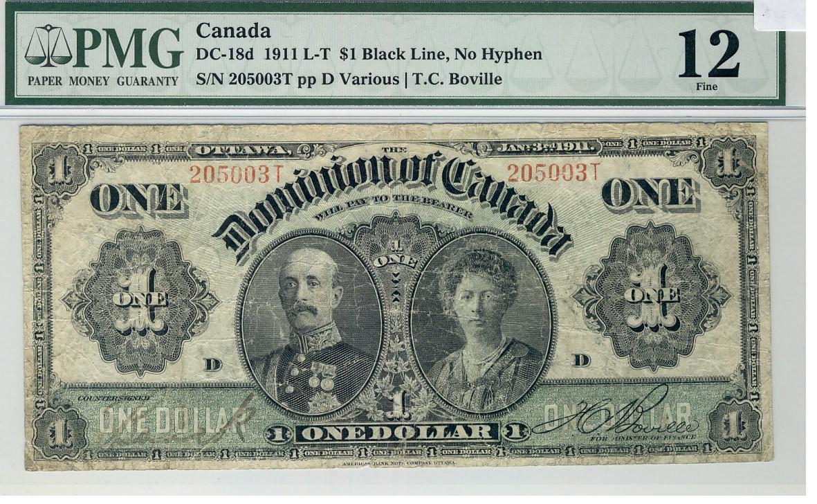 Dominion of Canada, 1911 $1 DC-18d #205003T, PMG F12.