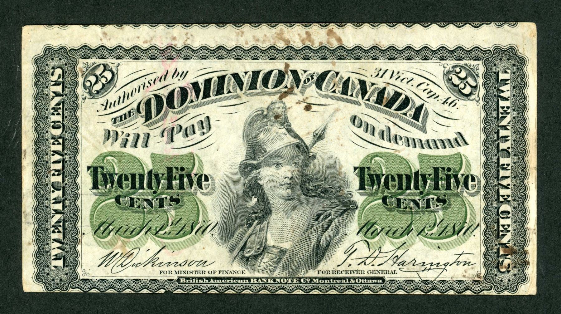 Dominion of Canada 25¢ 1870, DC-1c-E-25-i Souvenir Note