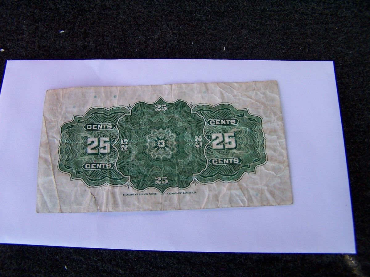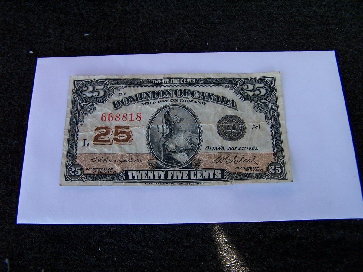 Shin plaster .25 cent note. Dominion of Canada 1923. Signatures of Campbell & Clark.