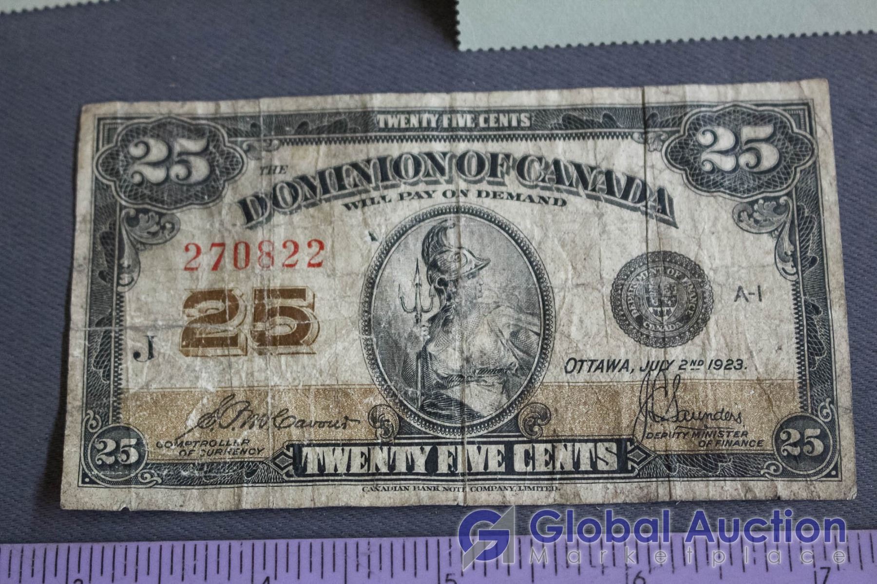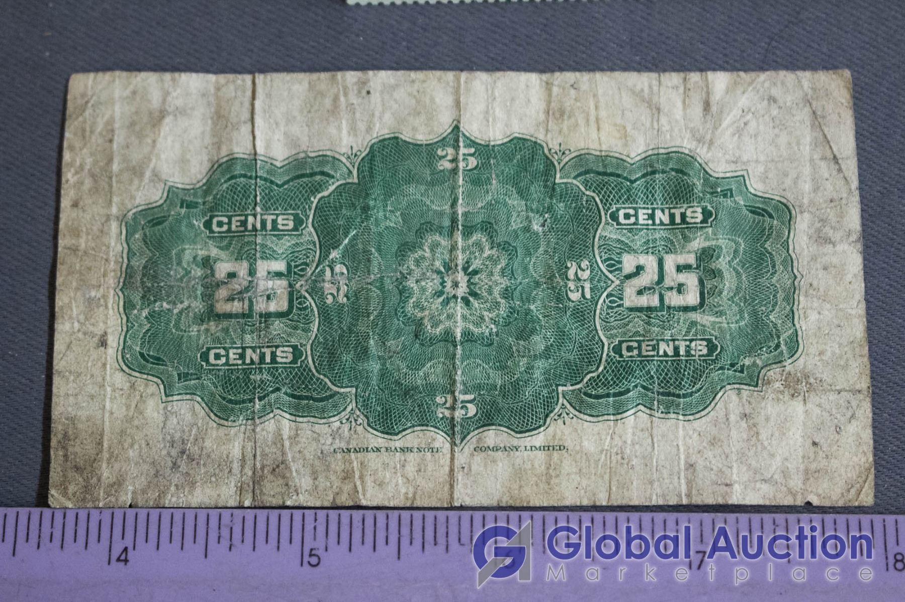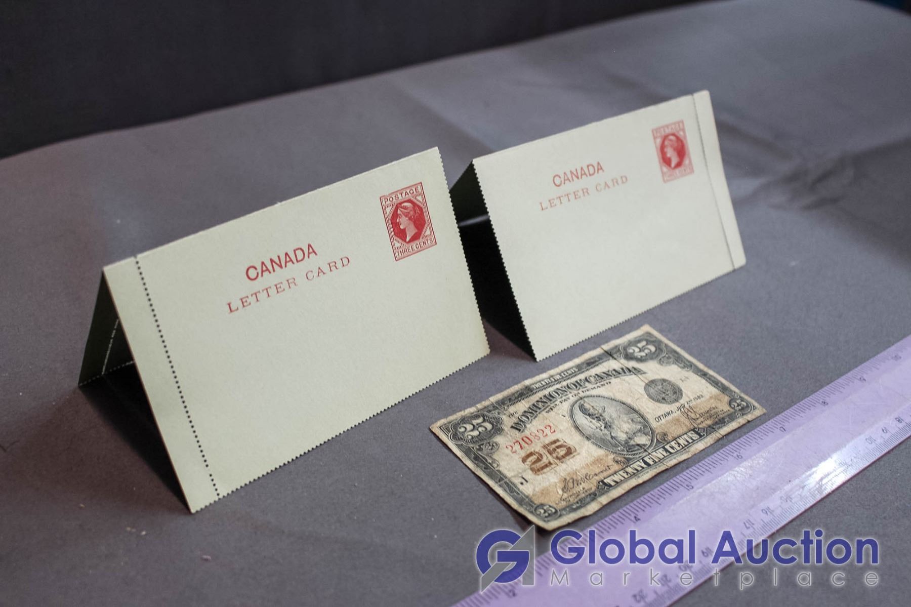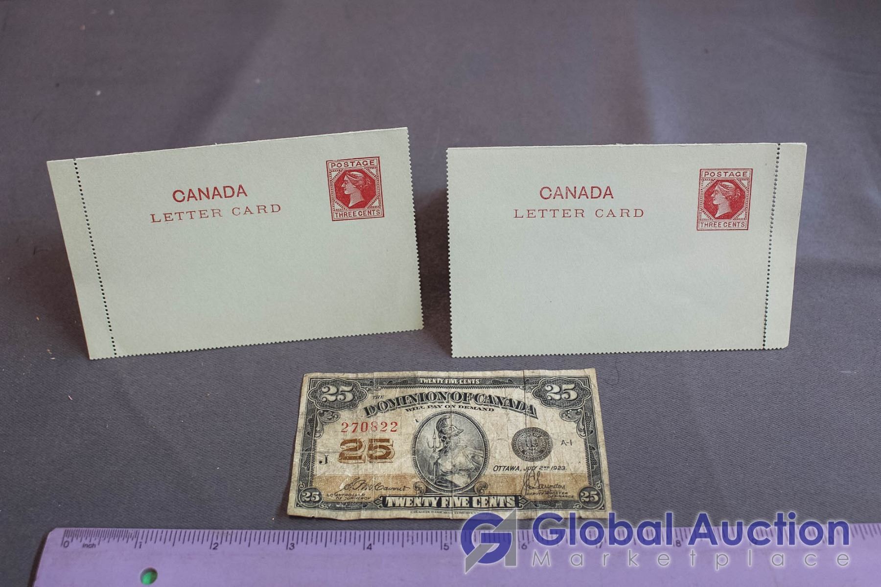 Dominion of Canada 25 cent Bank Note and 2 Canada Letter Cards