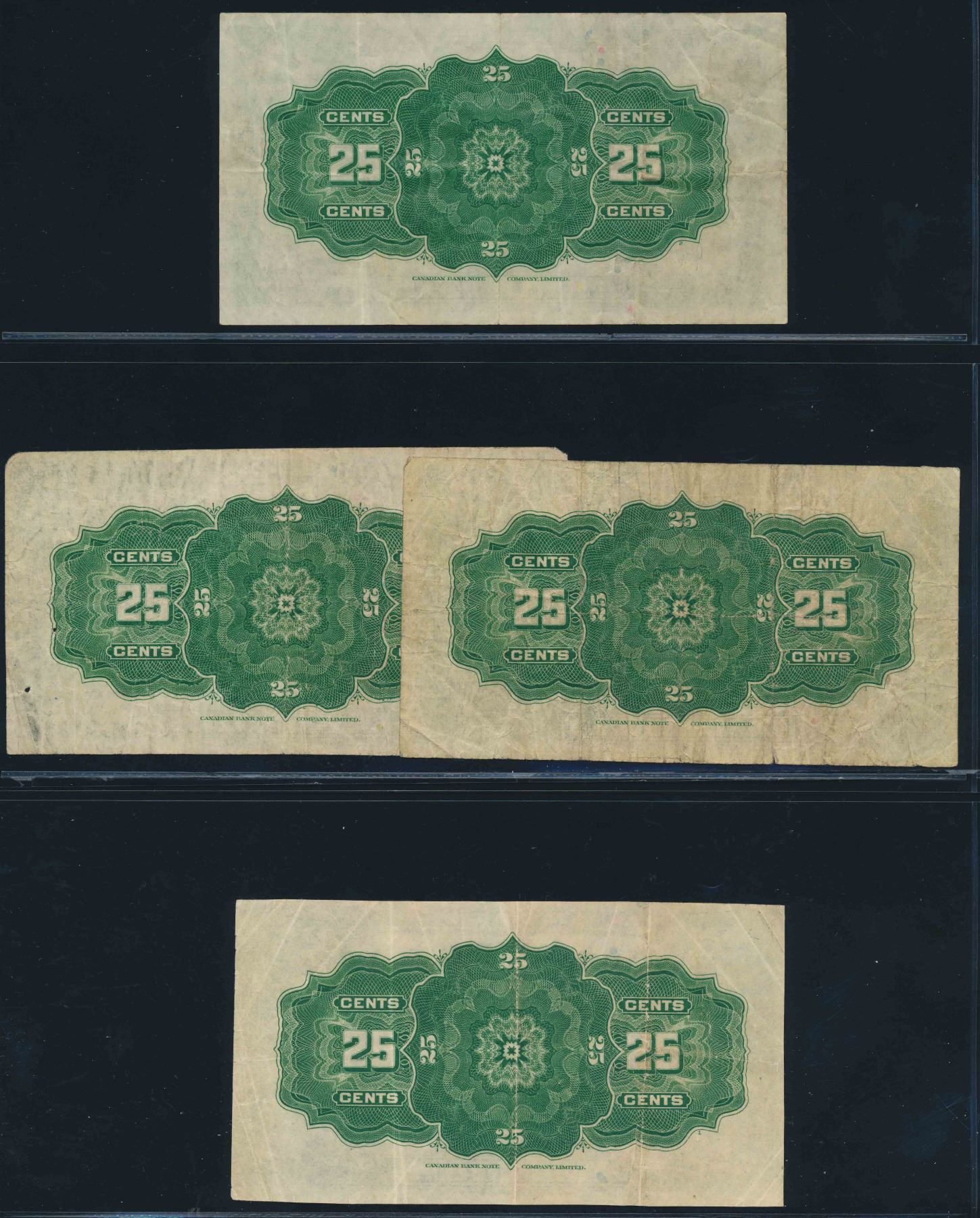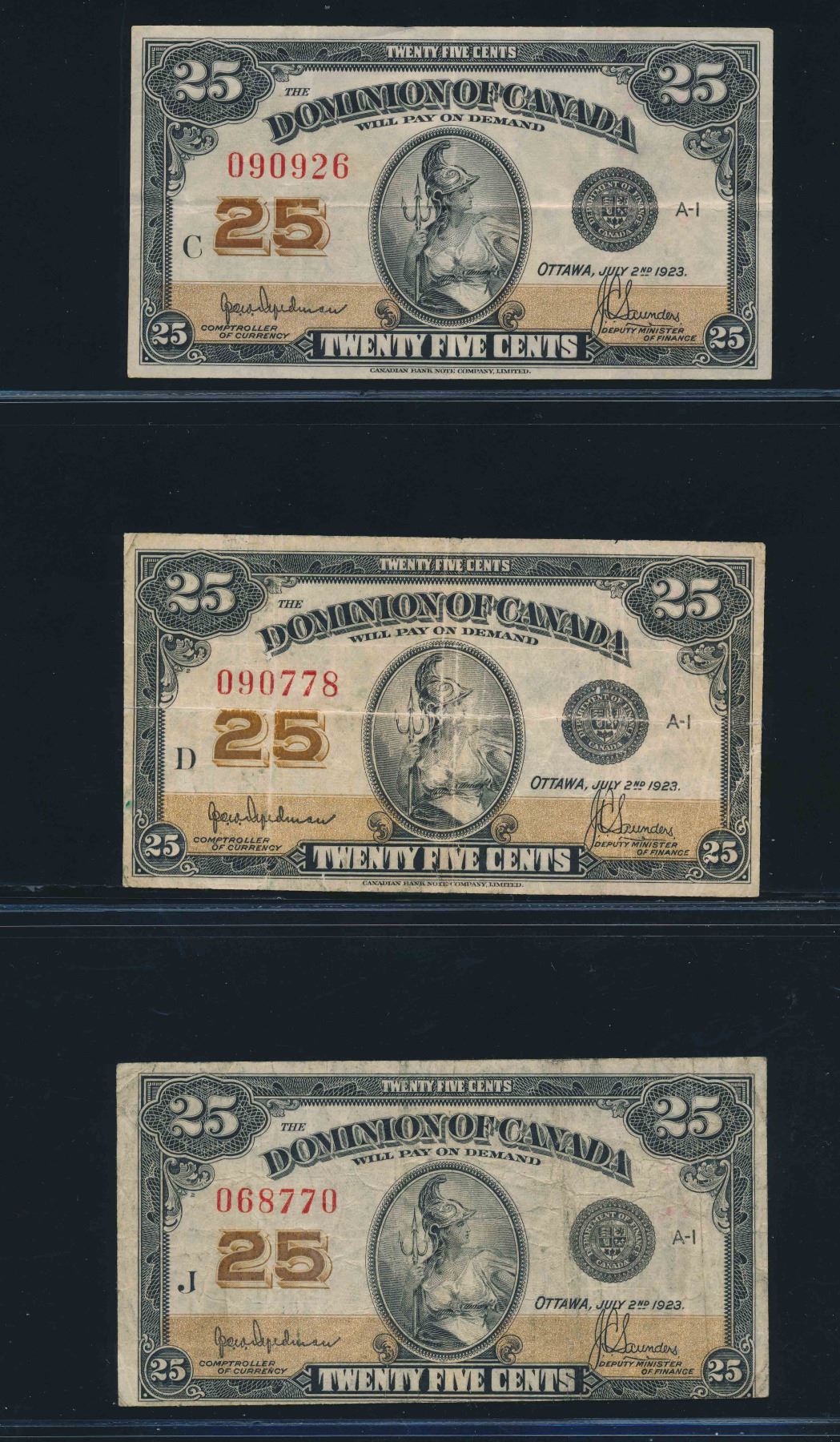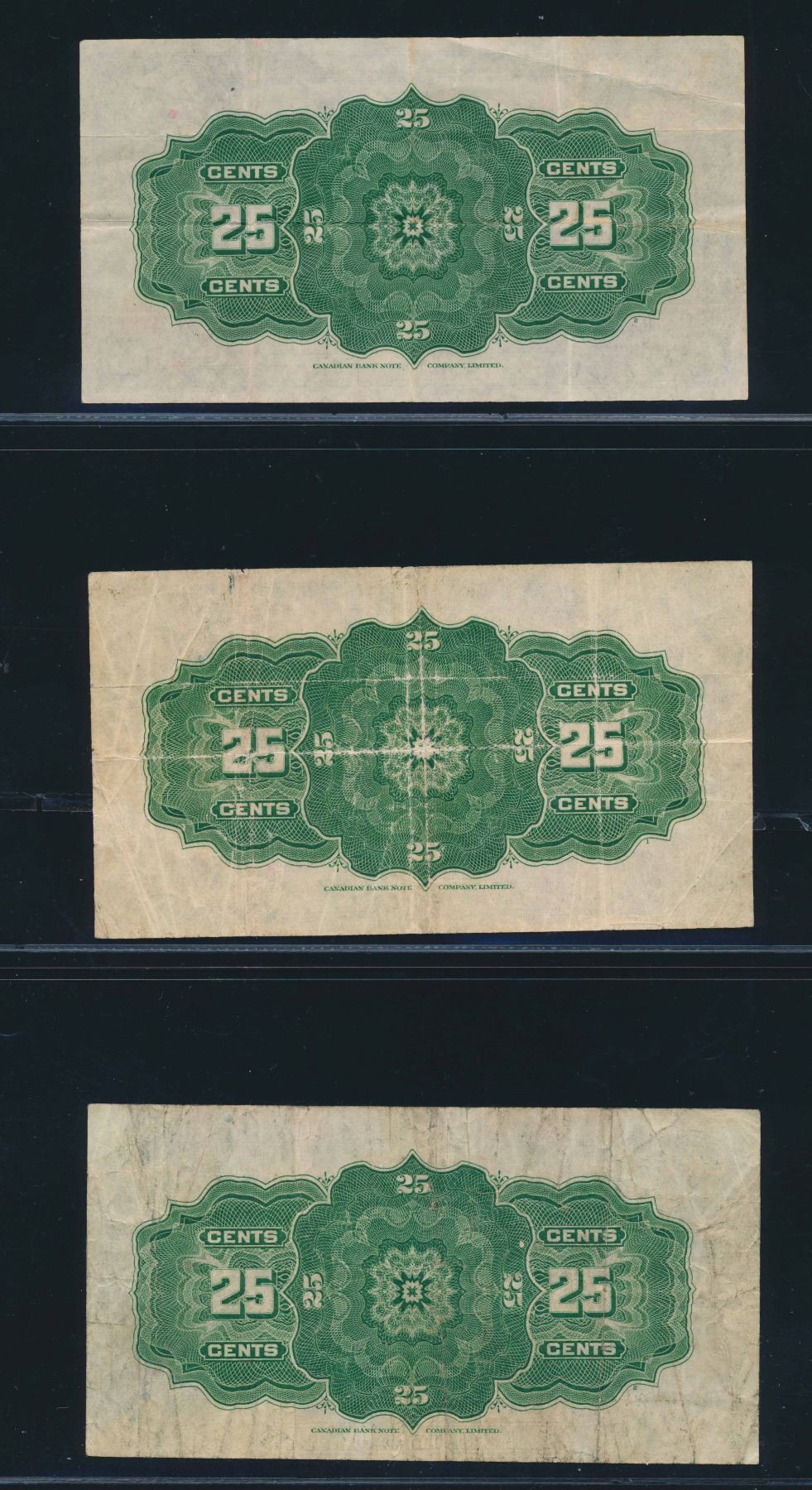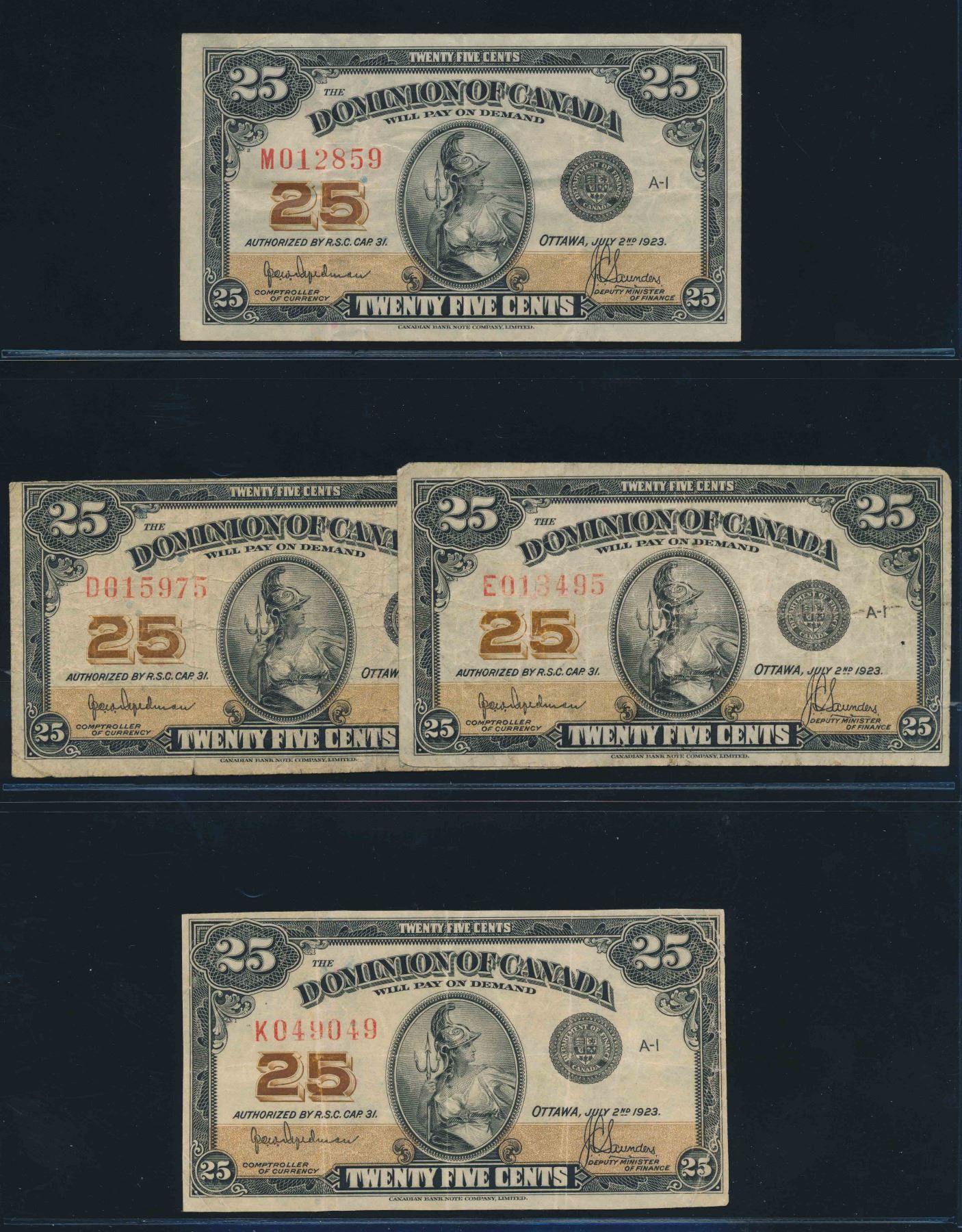 Dominion of Canada Lot of Seven 1923 25c "Shinplasters" 4 x DC-24a, 3 X DC-24b