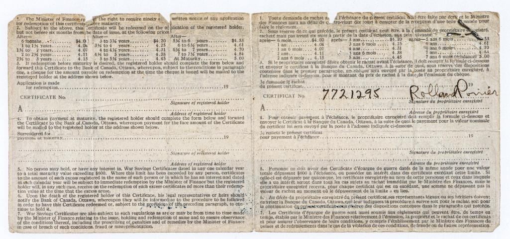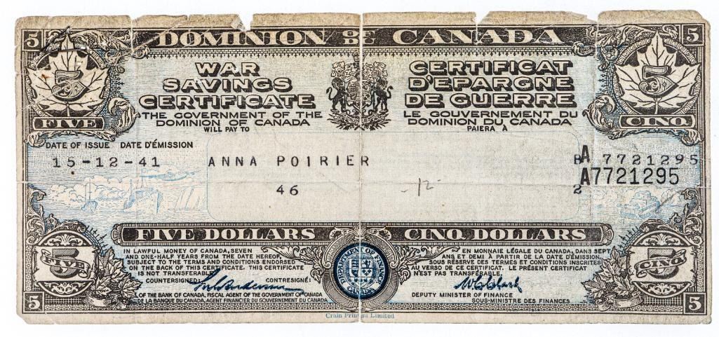 Dominion of Canada War Savings Certificate Dated 15-12-41