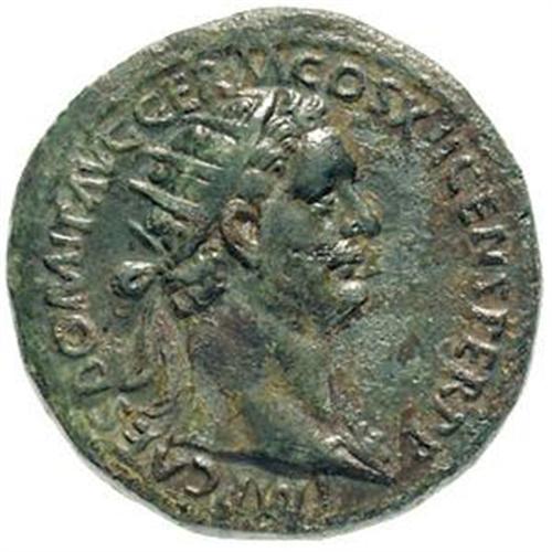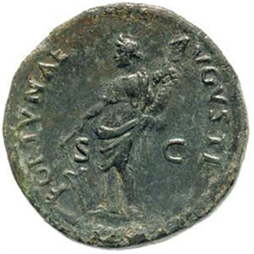 Domiziano (81-96). Dupondio. D/ Busto radiato a destra, con egida. R/ FORTVNAE AVGVSTI SC. La Fortuna stante a sinistra, con timone e cornucopia. RIC 326 (a). gr. 15.36 AE. Patina verde. Bel BB+/qSPL.