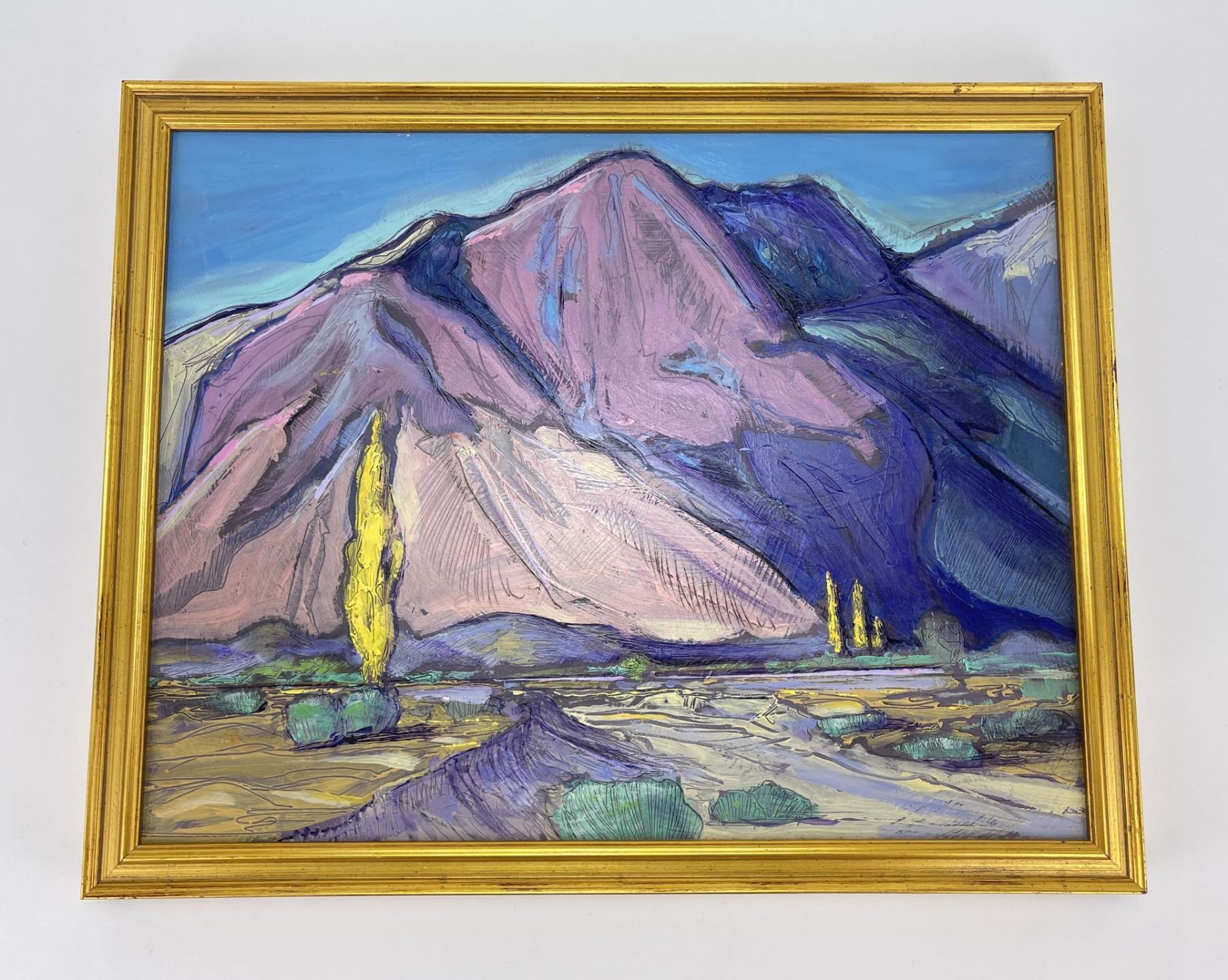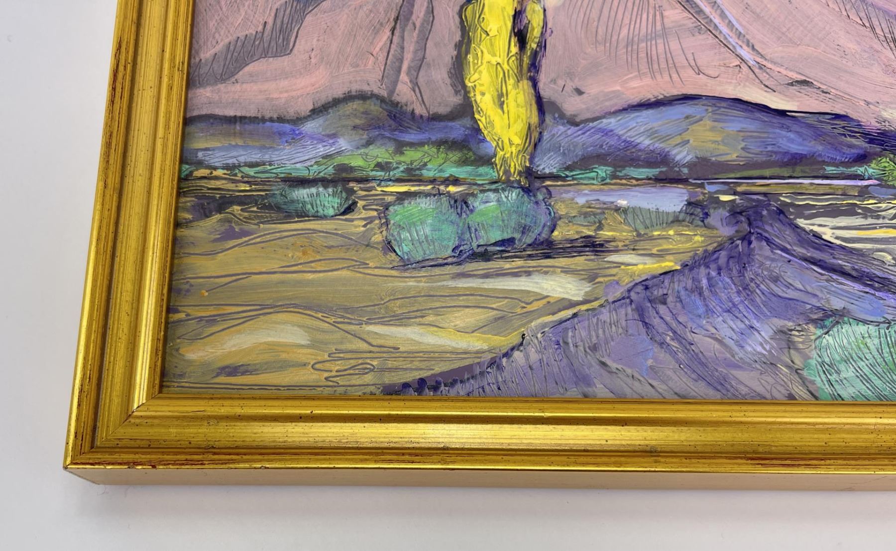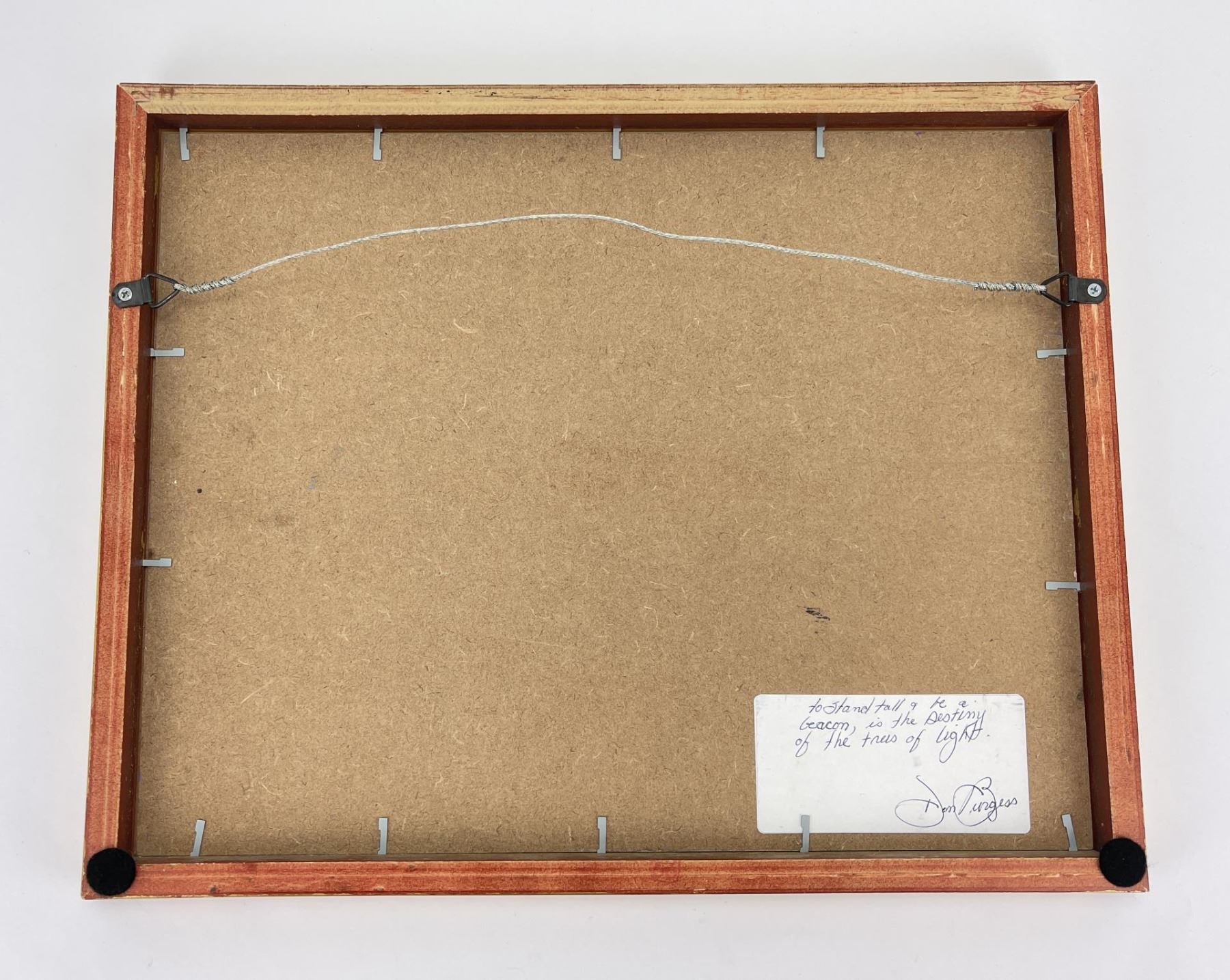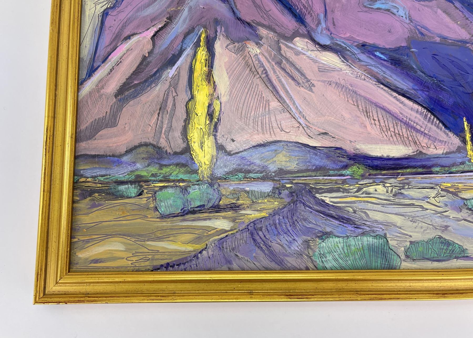 12" by 15" framed. Don Charlie Burgess, March 13, 1947 to January 3, 2018 Don Burgess was born in Hollywood, California in 1947. He had a fraternal twin brother, John Burgess and two half-brothers, Christian Title and Irwin Title. He grew-up in the San Fernando Valley, and attended Canoga Park High School before going on to Otis College of Art and Design. Don developed his painting skills while in college, and later studied under both Sergei Bongart and his older brother Christian Title. After college he backpacked and traveled throughout Europe visiting museums and painting. Some of his most significant stops and areas of inspiration were Amsterdam, Italy, and Switzerland and the Montmartre area in Paris. In his early years, he was inspired by Impressionism, which was a critical influence in developing his own stylistic landscapes. In addition to producing his artwork, in the late 1970’s and 1980’s Don owned a live music venue called the Blue Lagoon Saloon in Marina Del Rey, California. Numerous musicians had their start at his club including the Red Hot Chili Peppers, Johnny Depp (The Runaways), and Katey Sagal best known for her work in the television productions, "Married with Children" and "Sons of Anarchy. Etta James, sat-in on sets at the Blue Lagoon, and Jackson Browne, once sang at his birthday celebration. During the last twenty years of his life, Don was inspired by the rural landscape of Warner Springs, California as seen in his oil paintings, watercolors and drawings from this period. Don’s free time was spent painting in open fields and his art gallery. He shred his passion for art and painting by teaching art classes to children at local schools. Don passed away in Warner Springs on January 3, 2018.
