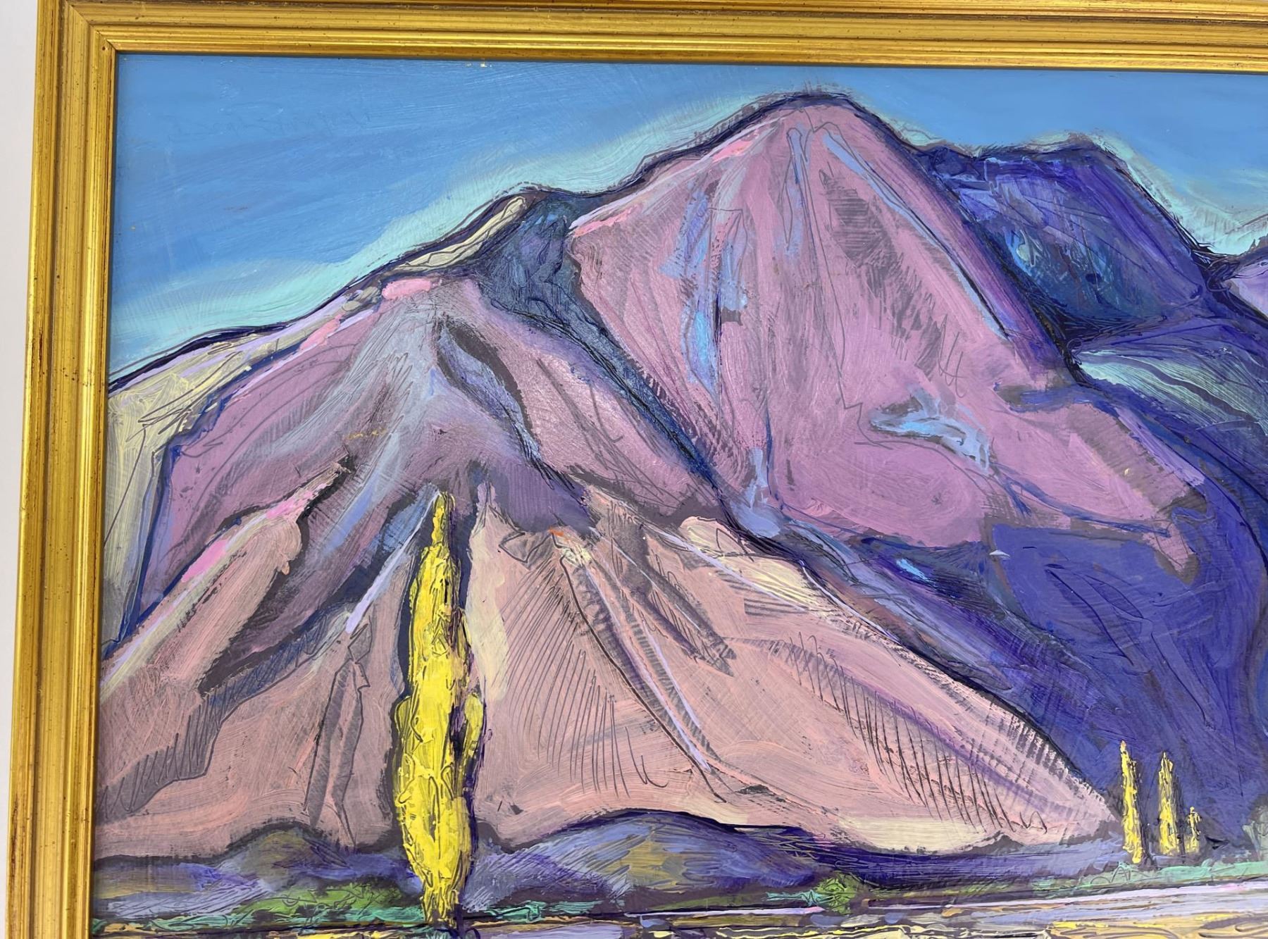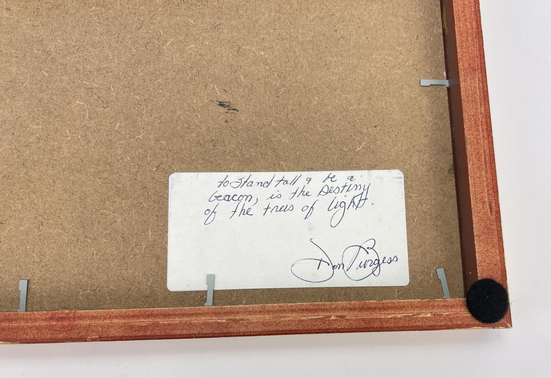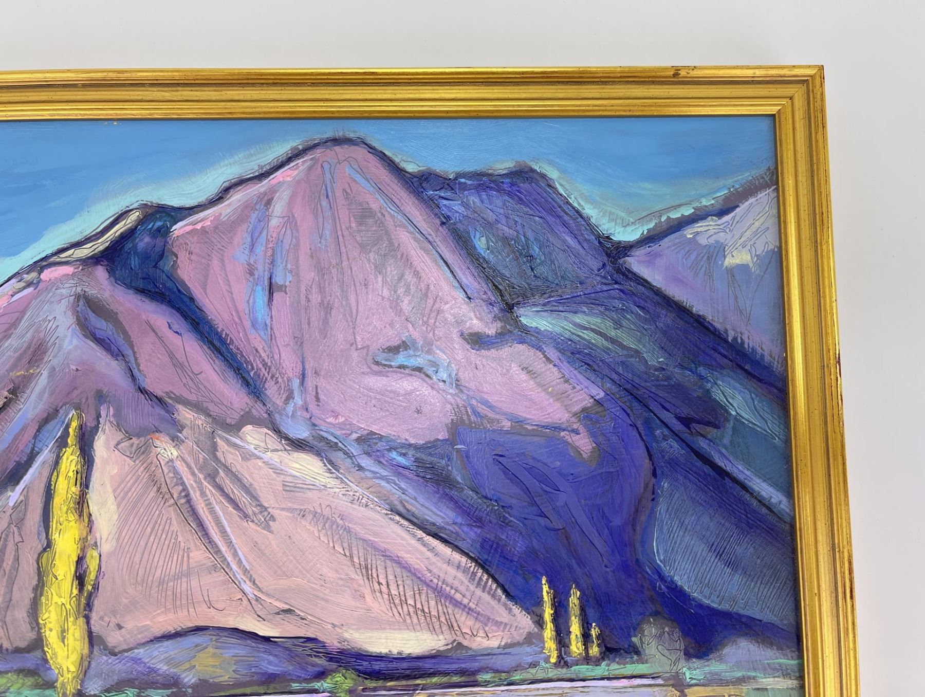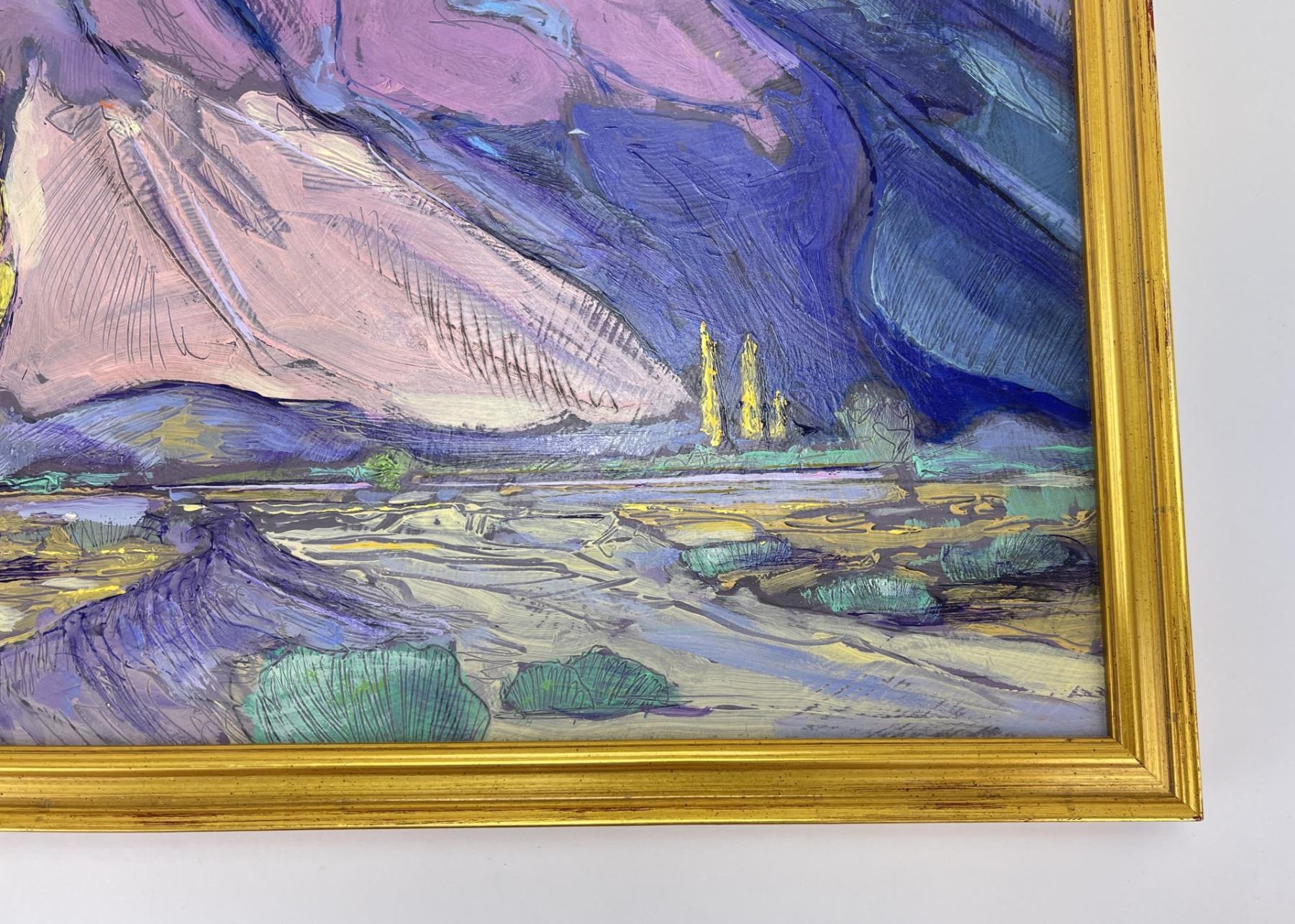 12" by 15" framed. Don Charlie Burgess, March 13, 1947 to January 3, 2018 Don Burgess was born in Hollywood, California in 1947. He had a fraternal twin brother, John Burgess and two half-brothers, Christian Title and Irwin Title. He grew-up in the San Fernando Valley, and attended Canoga Park High School before going on to Otis College of Art and Design. Don developed his painting skills while in college, and later studied under both Sergei Bongart and his older brother Christian Title. After college he backpacked and traveled throughout Europe visiting museums and painting. Some of his most significant stops and areas of inspiration were Amsterdam, Italy, and Switzerland and the Montmartre area in Paris. In his early years, he was inspired by Impressionism, which was a critical influence in developing his own stylistic landscapes. In addition to producing his artwork, in the late 1970’s and 1980’s Don owned a live music venue called the Blue Lagoon Saloon in Marina Del Rey, California. Numerous musicians had their start at his club including the Red Hot Chili Peppers, Johnny Depp (The Runaways), and Katey Sagal best known for her work in the television productions, "Married with Children" and "Sons of Anarchy. Etta James, sat-in on sets at the Blue Lagoon, and Jackson Browne, once sang at his birthday celebration. During the last twenty years of his life, Don was inspired by the rural landscape of Warner Springs, California as seen in his oil paintings, watercolors and drawings from this period. Don’s free time was spent painting in open fields and his art gallery. He shred his passion for art and painting by teaching art classes to children at local schools. Don passed away in Warner Springs on January 3, 2018.