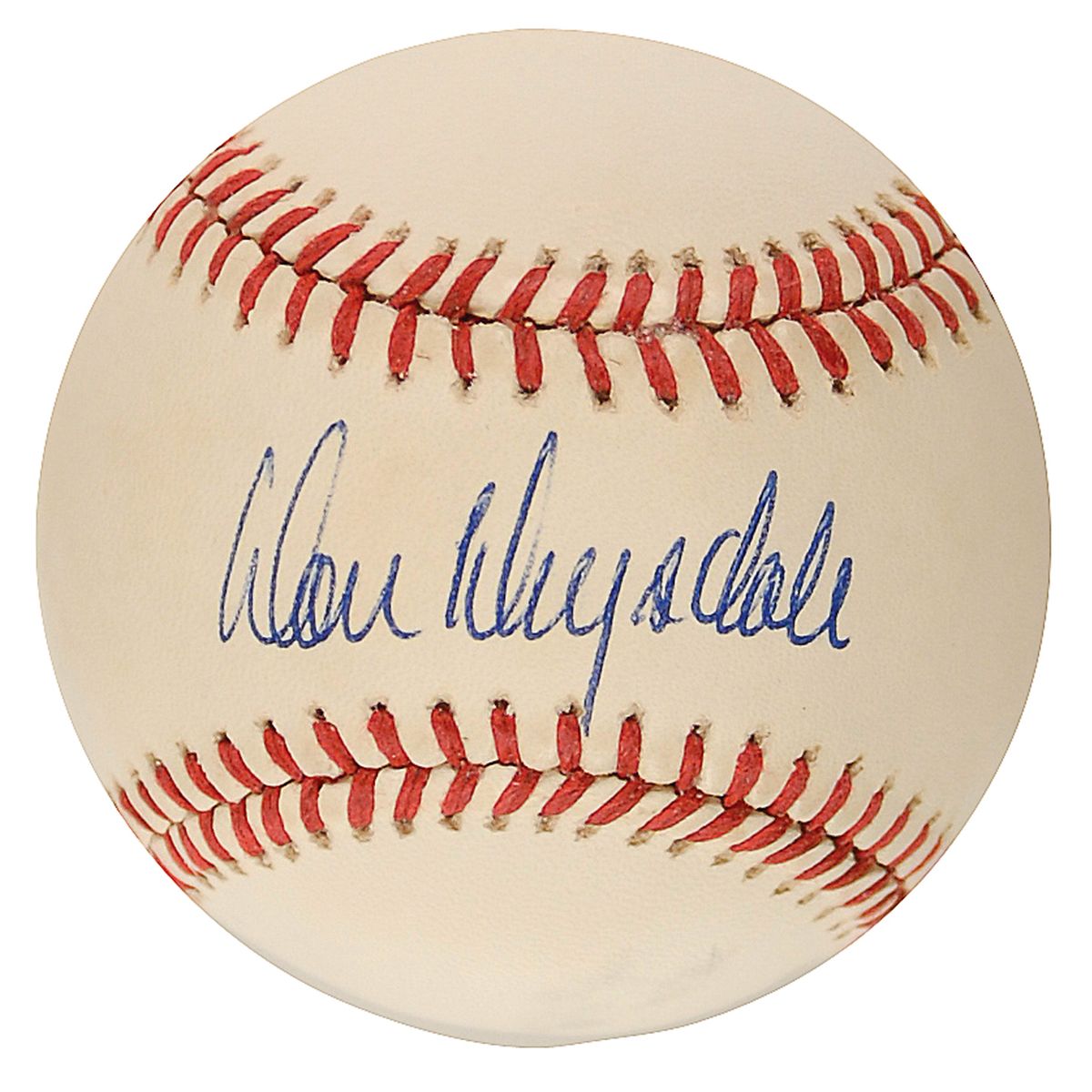 Official Rawlings National League baseball signed in blue ballpoint on the sweet spot. In fine condition, with some scattered light soiling, none affecting signature.