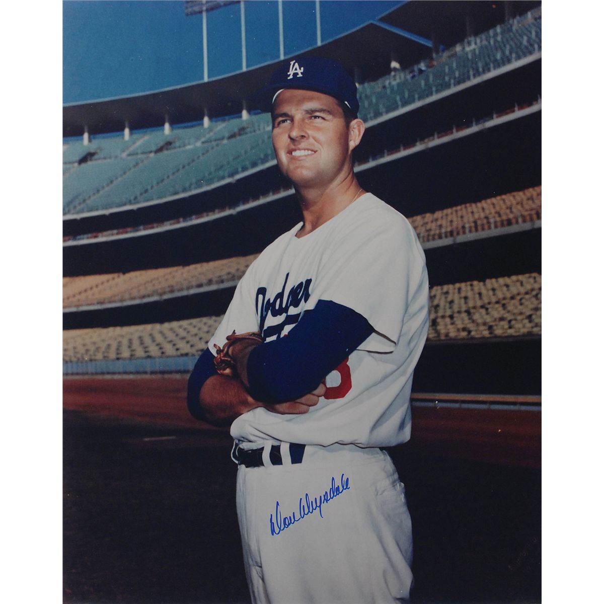 Color satin-finish 16 x 20 photo of Drysdale in his Dodgers uniform, boldly signed in blue felt tip. In fine condition.
