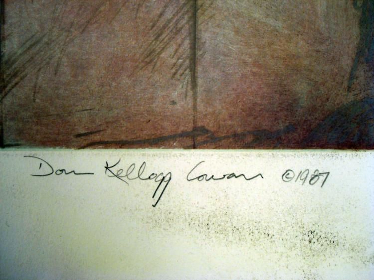This appears to an abstract landscape, portraying a terrain of waving grasses pastel hues. * Artist: Don Kellogg CowanSignature: In pencil, lower rightTitle: "Terrain VII"Edition: 117/125, marked lower leftMedium: Serigraph on paperSheet size: 29 1/2 x 41 1/2 inches Condition: Very good; minor crease marks and smudges in the marginsBiography: * Don Kellogg Cowan has been an artist for over 30 years. He studied at Northwestern University, and later pursued visual arts. He works primarily in oils, water colors, and ink, and is known for both abstract and realistic subjects, all in vividly expressive colors. *