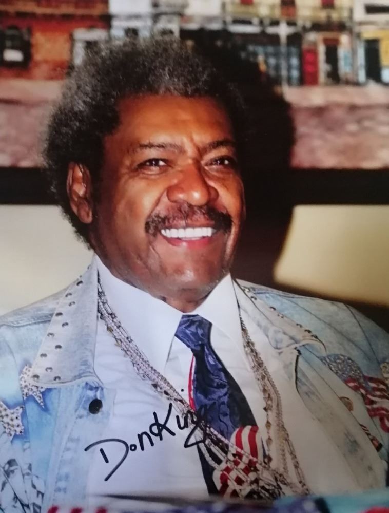 Don King signed 11x8 inch photo. Mounted and framed, supplied with coa.