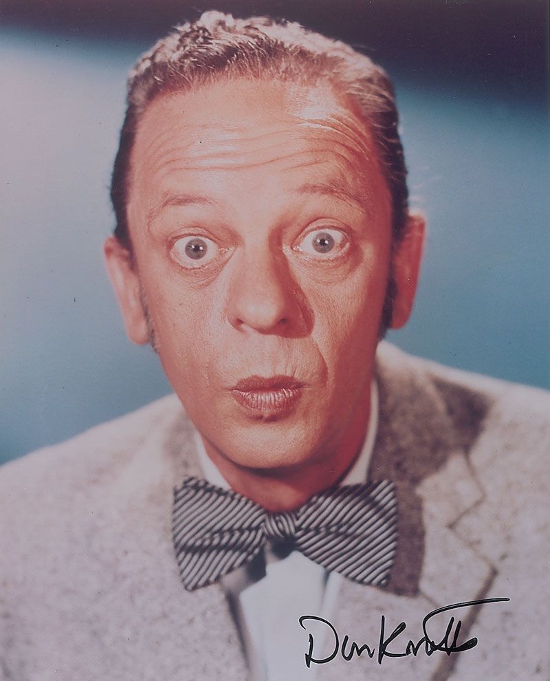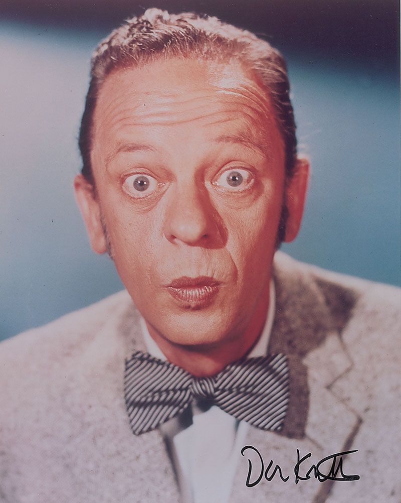 Two identical color glossy 8 x 10 photos of Knotts striking a comical face, each signed in black felt tip. In fine condition.