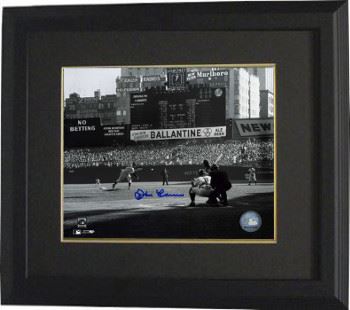 Don Larsen's most notable accomplishment was pitching the only perfect game (as well as the only no hitter) in the history of the World Series, and one of only 18 perfect games overall. He was pitching for the New York Yankees in Game 5 of the 1956 World Series against the Brooklyn Dodgers, on October 8, 1956. His perfect game remains the only no-hitter of any type ever pitched in postseason play. Don Larsen has hand signed this New York Yankees 8x10 Photo (1956 World Series Perfect Game). Certificate of Authenticity from Athlon Sports Collectibles. Custom Black Mat and Premium Black Color Framed as shown.