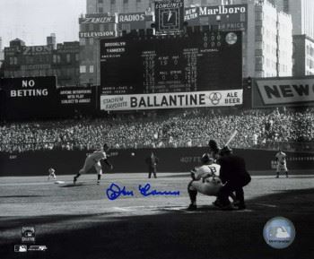 Don Larsen's most notable accomplishment was pitching the only perfect game (as well as the only no hitter) in the history of the World Series, and one of only 18 perfect games overall. He was pitching for the New York Yankees in Game 5 of the 1956 World Series against the Brooklyn Dodgers, on October 8, 1956. His perfect game remains the only no-hitter of any type ever pitched in postseason play. Don Larsen has hand signed this New York Yankees 8x10 Photo (1956 World Series Perfect Game). Certificate of Authenticity from Athlon Sports Collectibles.