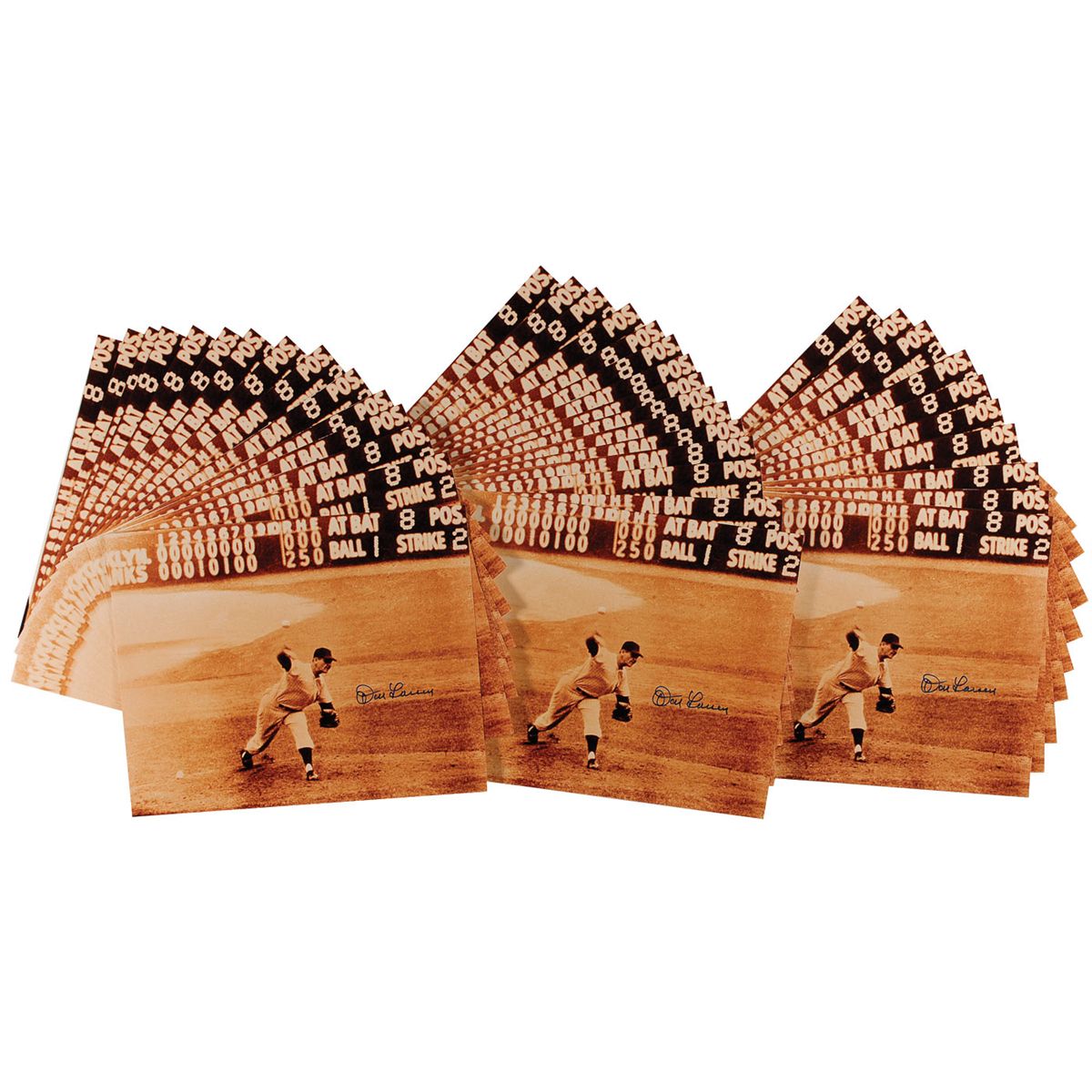 Forty-two identical sepia glossy 10 x 8 photos of Larsen throwing the final pitch of his perfect game in the 1956 World Series, each signed in blue felt tip. In fine condition.