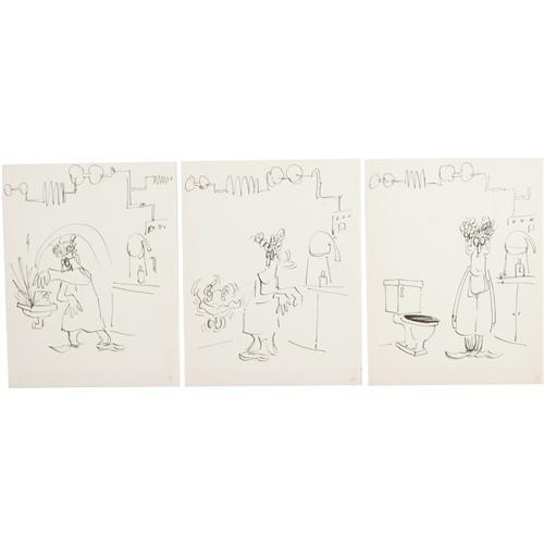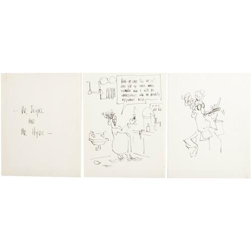 <B>Don Martin - Mad #77 "Dr. Jekyll and Mr. Hyde" Gag Preliminary Sketch Original Art, Group of 12 (EC, 1963).</B></I> <B>Mad's</B></I> Maddest Artist, Don Martin, worked out his uproarious Dr. Jekyll and Mr. Hyde lampoon with these 12 sensational ink sketches. The finished gag appeared as pages 8 and 9 of <B>Mad </B></I>#77. The overall size of each of these preliminary pages measures approximately 8.5" x 11", and the art is in Excellent condition. <BR><BR><b>Shipping:</b> Flat Material, Small (<a target="_blank" href="http://www.heritageauctions.com/common/shipping.php">view shipping information</a>)