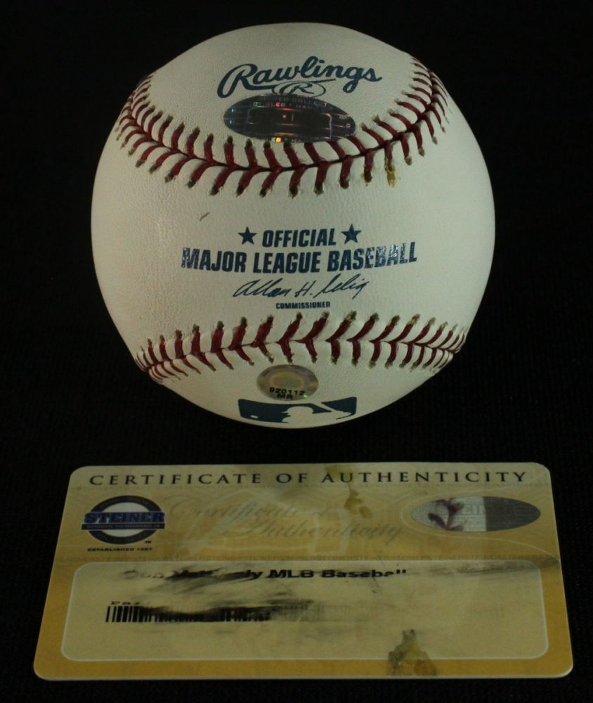 Official Major League Baseball. Hand-signed in blue ink by Don Mattingly (Dodgers, Yankees). The autograph includes a Steiner hologram and matching COA for authenticity purposes.