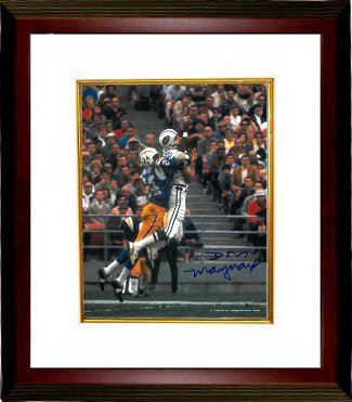 Don Maynard played primarily with the New York Jets. He was a 4 time AFL All-Star selection, won the 1967 AFL All-Star Game Offensive MVP and won one Super Bowl. He was elected into the Pro Football Hall of Fame in 1987. Don Maynard has hand autographed this New York Jets 11x14 Photo. Certificate of Authenticity from Athlon Sports. Custom White Mat and Premium Mahogany Frame as shown.
