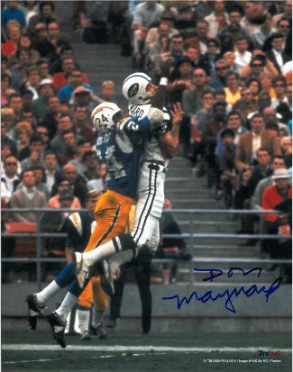 Don Maynard played primarily with the New York Jets. He was a 4 time AFL All-Star selection, won the 1967 AFL All-Star Game Offensive MVP and won one Super Bowl. He was elected into the Pro Football Hall of Fame in 1987. Don Maynard has hand autographed this New York Jets 11x14 Photo. Certificate of Authenticity from Athlon Sports