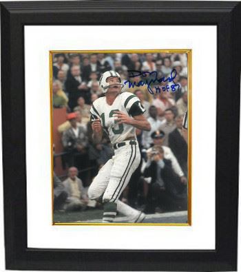 Don Maynard played primarily with the New York Jets. He was a 4 time AFL All-Star selection, won the 1967 AFL All-Star Game Offensive MVP and won one Super Bowl. He was elected into the Pro Football Hall of Fame in 1987. Don Maynard has hand autographed this New York Jets 8X10 Photo with HOF 87 inscription. Certificate of Authenticity from Athlon Sports. Custom White Mat and Premium Black Color Framed as shown.