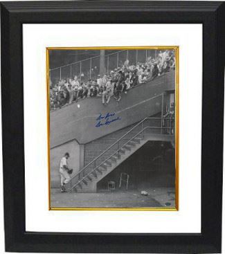 Until 2011 when Detroit Tigers Pitcher Justin Verlander did it, Don Newcombe was the only baseball player to have won the Rookie of the Year, Most Valuable Player and Cy Young awards in his career. In 1949, he became the first black pitcher to start a World Series game. In 1951, Newcombe was the first black pitcher to win twenty games in one season. In 1956, he was the first pitcher to win the National League MVP and the Cy Young Award in the same season. It was during this era that Willard Mullin, a noted sports cartoonist, fixed the Brooklyn team with the lovable nickname of "Dem Bums". After hearing his cab driver ask, "So how did those bums do today?". Don Newcombe has hand signed this Brooklyn Dodgers B&W 16x20 Photo with "Dem Bums" inscription. Leaf Authentic Hologram and Certificate of Authenticity from Athlon Sports. Custom White Mat and Premium Black Color Framed as shown.