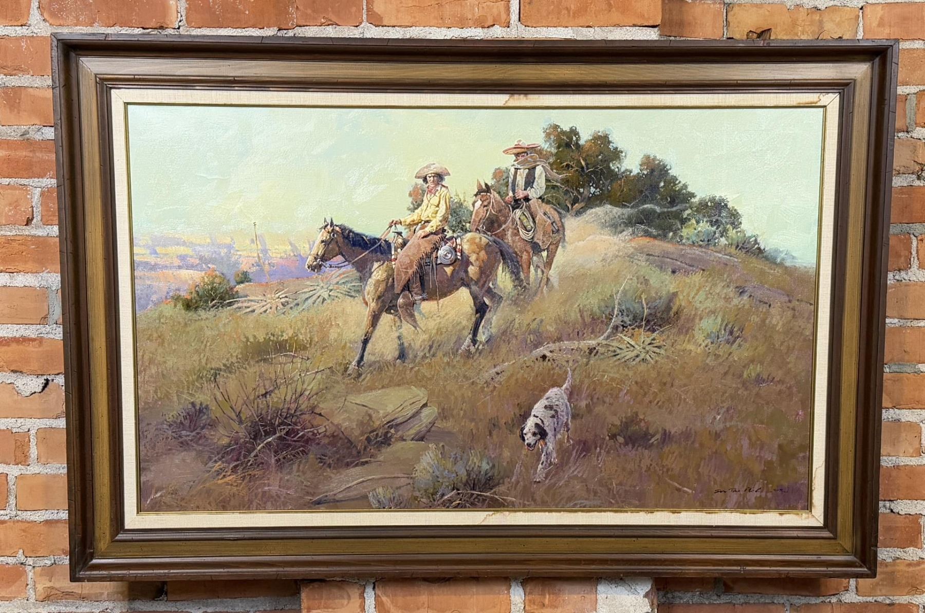 Title is On the Rim. Oil on Canvas. 24" by 40" unframed, 31" by 47" framed.