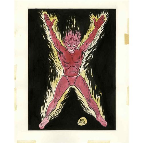 Don Rico - Human Torch Pin-Up Illustration Original Art Don Rico - Human Torch Pin-Up Illustration O