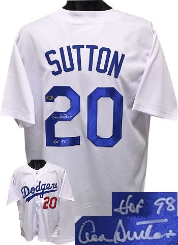 In the majors, he played 23 years for the Los Angeles Dodgers, Houston Astros, Milwaukee Brewers, Oakland Athletics, and California Angels. He won a total of 324 games, 58 of them shutouts and five of them one-hitters, and he is seventh on baseball's all-time strikeout list with 3,574 K's. This is a Don Sutton Los Angeles Dodgers unsigned White unlicensed custom-prostyle jersey with twill stitched nameplate and numbers with HOF 98 inscription. MAB Hologram and Certificate of Authenticity from Athlon Sports Collectibles.