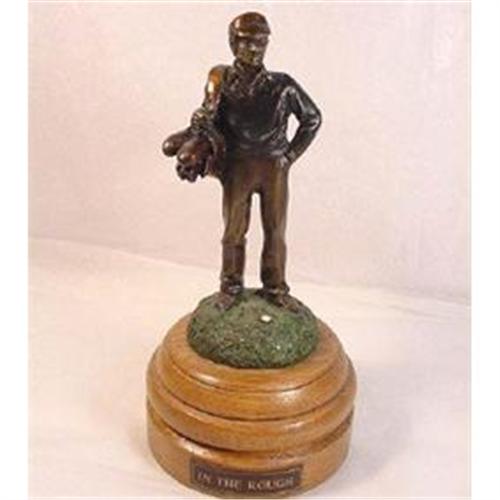 ?In the Rough? is the title of this limited edition bronze figurine. Dated 1991, and signed ?Don Toney?, this is number 34 of 100. Figurine is of man with golf clubs, with golf ball in front of him., mounted on turned oak plinth. Measures 18cm high (7.1/8 inches). Base of wood is 9cm diameter (3.1/2 inches). Great gift for the golfer in your family!