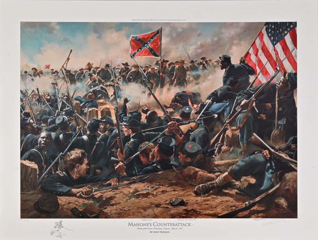 "Mahone's Counterattack". Artist Proof numbered 6/100. Battle of the Crater, Petersburg, Virginia, July 30, 1864.Signed with personalized sketch at bottom and dated 2004. Comes with Certificate of Authenticity. Print measures 24 1/2" x 30 1/2".