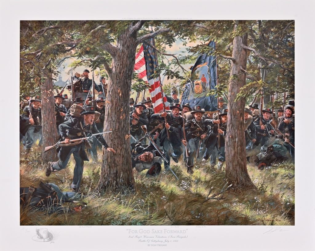 2nd Reg't. Wisconsin Volunteers, (Iron Brigade). Battle of Gettysburg, July 1, 1863, Civil War print. Limited edition No. AP6/100. Comes with letter of Authenticity. Print measures 24 1/2" x 28 1/2".