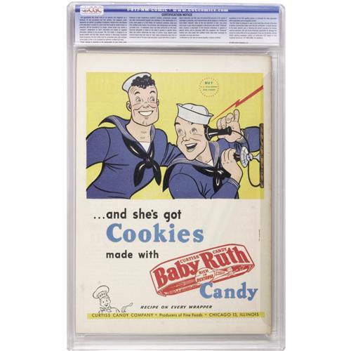 <B>Don Winslow of the Navy #26 Crowley Copy/File Copy/Double Cover (Fawcett, 1945) CGC NM 9.4 Off-white pages.</B></I> CGC notes, "1st cover 9.0, interior cover 9.4." Checking Copy stamp on cover. Overstreet 2006 NM- 9.2 value = $150. CGC census 10/06: 1 in 9.4, none higher.<BR><BR><b>Shipping:</b> Slabbed Comic (<a target="_blank" href="http://www.heritageauctions.com/common/shipping.php">view shipping information</a>)