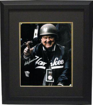 Don Zimmer is a 6 time World Series champion, 1961 All-Star selection, and the 1989 NL Manager of the Year. He was also once hit by a sharply hit foul ball batted by Yankee second baseman Chuck Knoblauch. The next game, Zimmer wore an army helmet with the word "ZIM" painted on the side and the Yankees logo stenciled on the front. Don Zimmer has hand autographed this New York Yankees 8x10 Photo in Army Helmet. Certificate of Authenticity from Athlon Sports. Custom Black Mat and Premium Black Frame as shown.