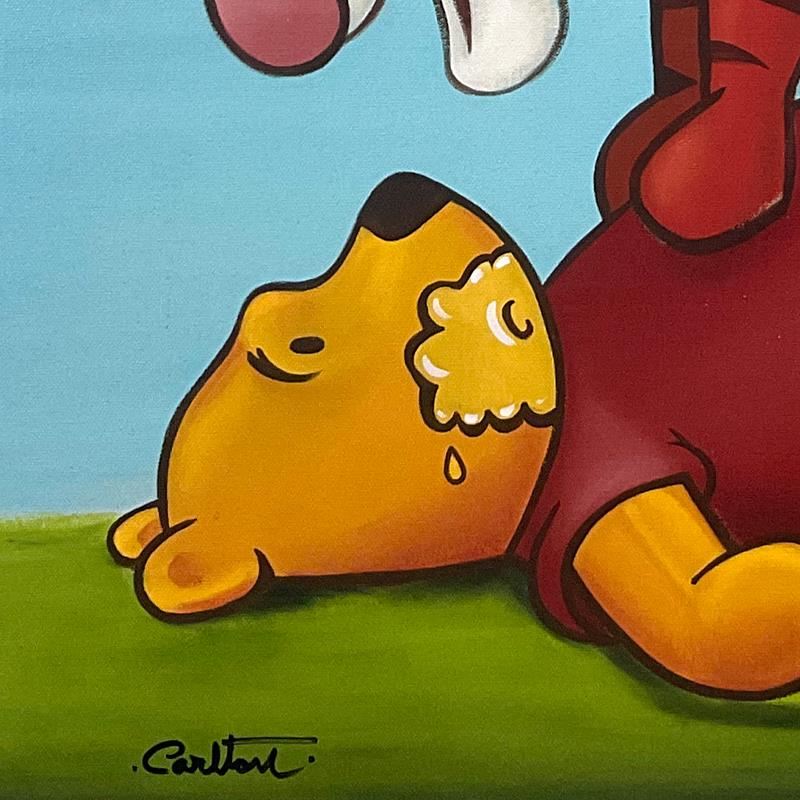 "Don't Cry Over Spilt Honey" is a limited edition giclee on canvas by Trevor Carlton & Stephen Reis, numbered and hand signed by the by both artists. This piece is gallery wrapped and licensed by Disney Fine Art. Includes Letter of Authenticity. Measures approx. 24" x 24" (image). ** Please note: there are some scratches on the image and minor creases on the canvas. **