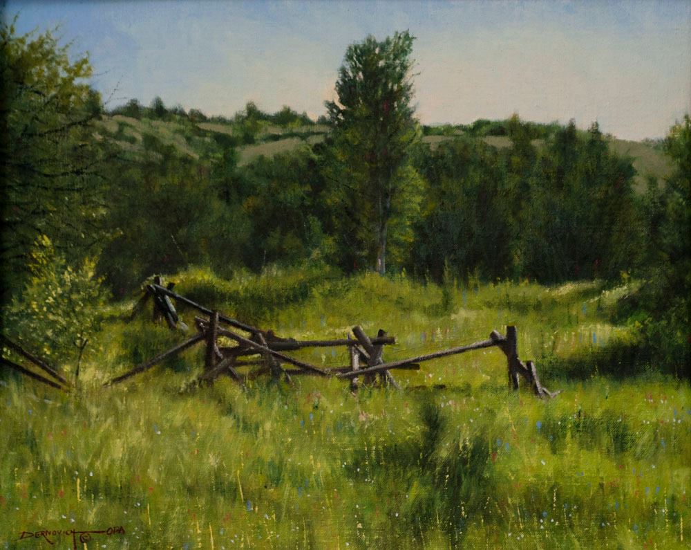 Artist: Don Dernovich. Title: Don't Fence Me In. Size: 16" x 20". Medium: Oil on canvas. Description: This fence wouldn't fence anything in!