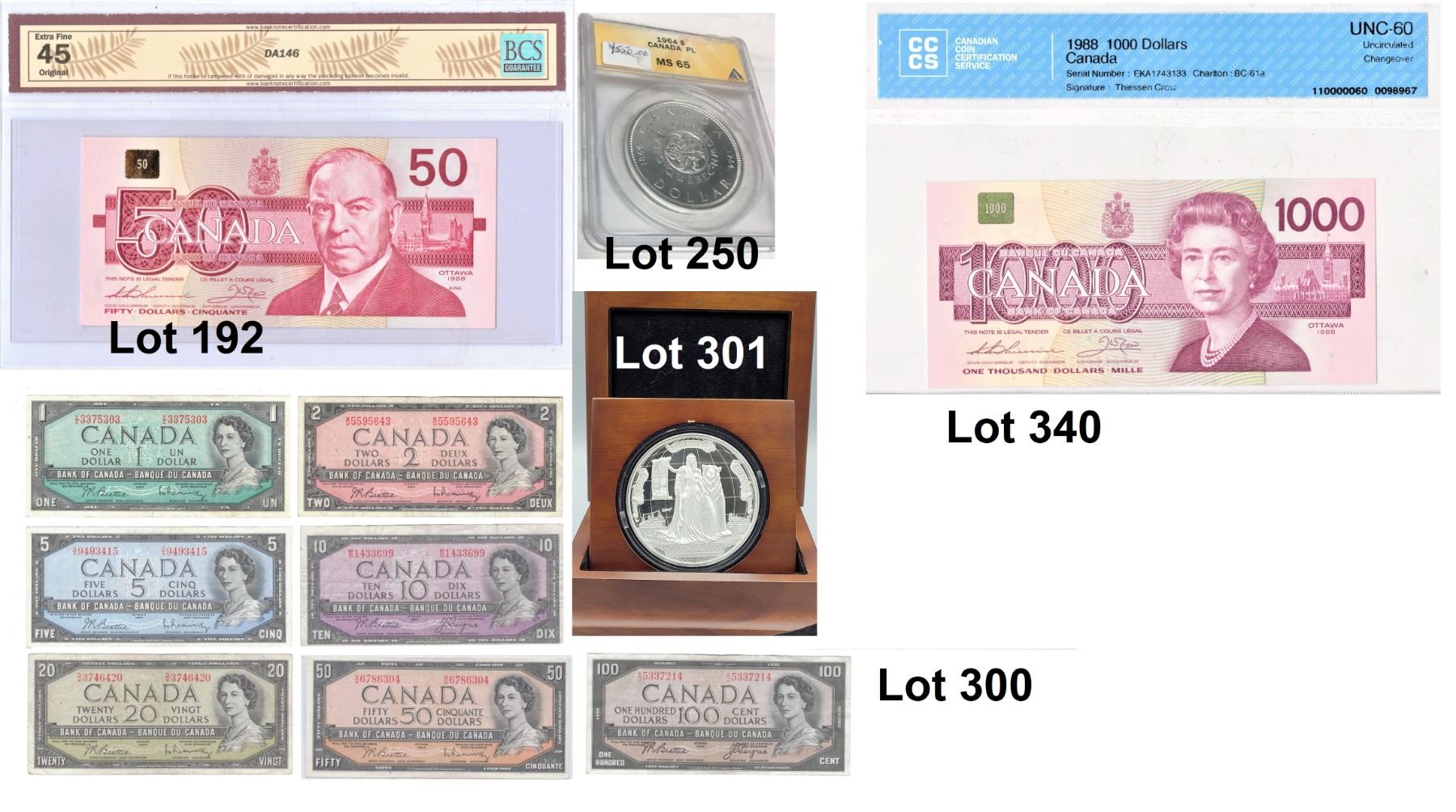 Lot 301 Canada's 150th Comemorative Silver Dollar Graded MS65 In Case, 0.9999% Silver, TEN TROY OUNCES!! ,