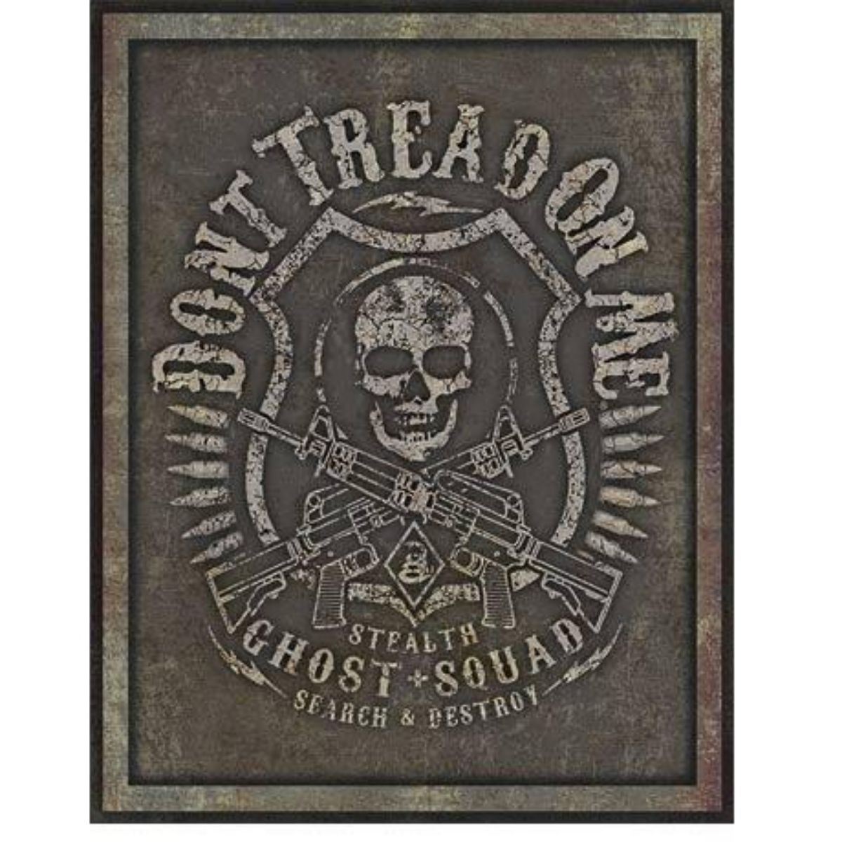 Don't Tread On Me, Stealth Ghost Squad, Search & Destroy metal pub bar sign. 12 1/2" X 16" with pre-drilled holes for mounting.