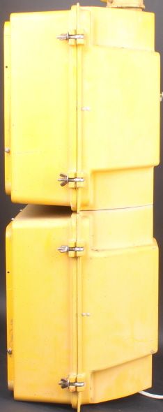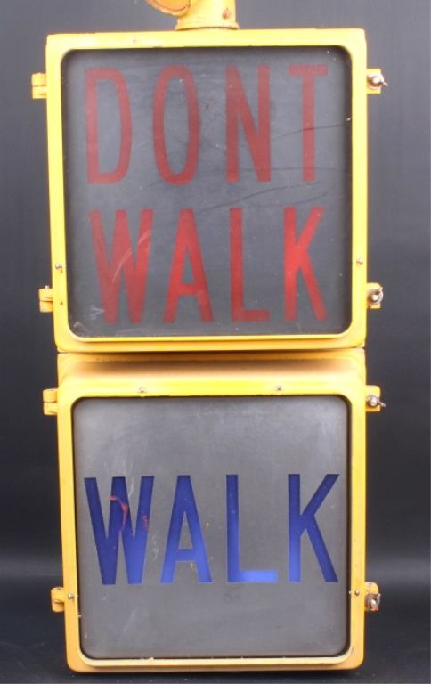 This lot features a "Don't Walk" traffic light. It has been wired to use a normal 110v outlet and lightbulbs. This would be great for any recreation room or garage. It measures 34" x 14" x 11".