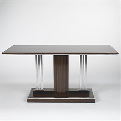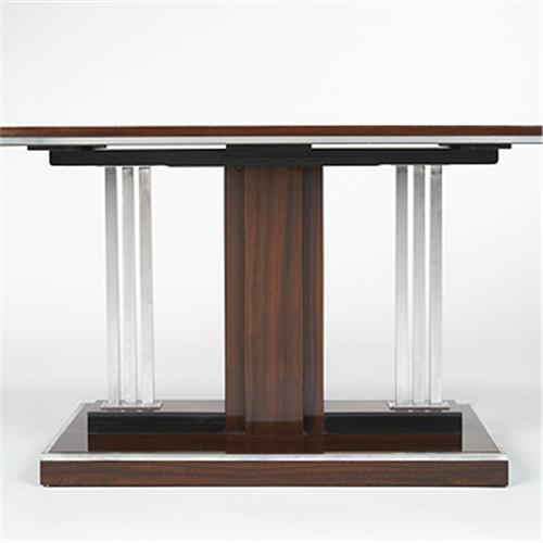 Donald Deskey console table Deskey-Vollmer, Inc. USA, 1927-1931 maple burl, steel, lacquered wood, Bakelite 60"w x 27"d x 29.5"h Literature: Donald Deskey: Decorative Designs and Interiors, Hanks and Toher, pg. 41