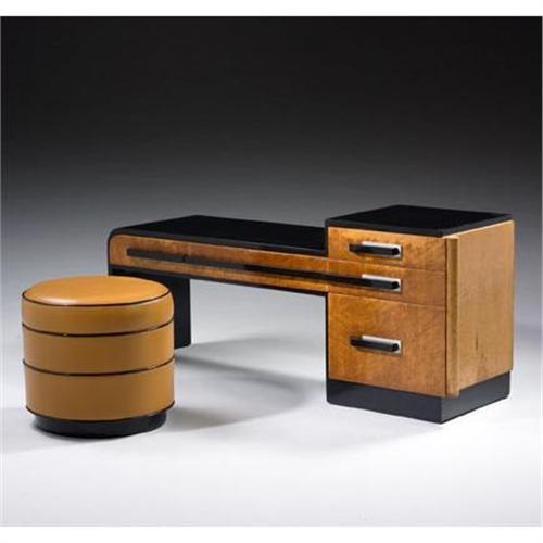 lacquered wood, bird's-eye maple, aluminum, vinyl