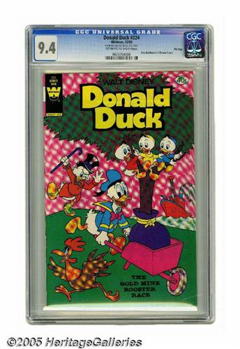 <B>Donald Duck #224 File Copy (Whitman, 1980) CGC NM 9.4 Off-white to white pages.</B></I> This book is "scarce" according to Overstreet, only distributed in Whitman 3-packs. Overstreet 2005 NM- 9.2 value = $50. CGC census 7/05: 1 in 9.4, none higher. <I>From the Random House Archives.</B></I>