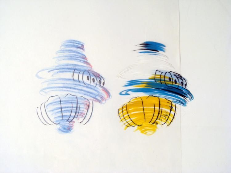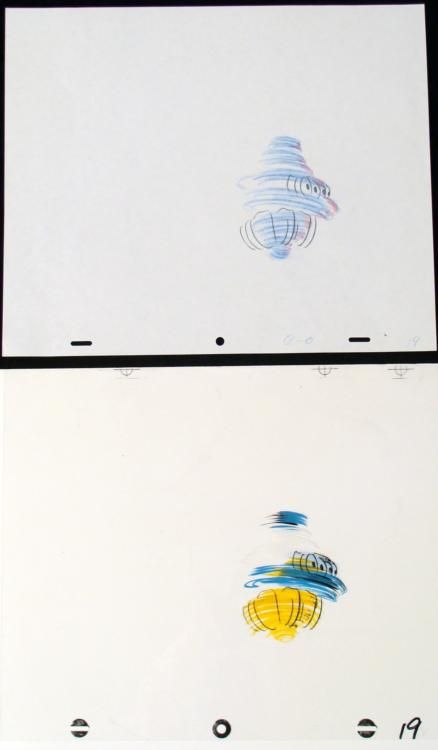 Donald Duck is a cartoon character created in 1934 at Walt Disney Productions. Donald is an anthropomorphic white duck with a yellow-orange bill, legs, and feet. He typically wears a sailor suit with a cap and a black or red bow tie. Donald is most famous * for his semi-intelligible speech and his mischievous and irritable personality. Along with his friend Mickey Mouse, Donald is one of the most popular Disney characters and was included in TV Guide's list of the 50 greatest cartoon characters of all time in * 2002.If I spin fast enough I can travel back in time and fix all the mistakes I made. * Original Drawing and Animation CelOriginal "rough" animation drawing in black, blue and red pencil with the notations in blue * Size of cel: 10 1/2" x 12 1/2"Size of drawing: 10 1/2" x 12 1/2"Overall Condition: Excellent * This is an original hand-painted cel was used in the production of an episode of "Donald Duck." Each cel represents a slight change in position of the characters. When individually photographed and projected in rapid succession, the images appear to move. * To create production cels, the original animator's drawing is transferred onto an acetate cel (by hand-inking and/or photo copying). The cel is then hand-painted on the reverse side. * * * The drawing and cel are ready to be matted and framed. The animators notations are located at the bottom of both.