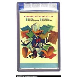 Donald Duck Fun Book File Copy (Dell Giant) #1 (Dell, 1953) CGC VF/NM 9.0 Off-white pages. This bright beauty looks like a file copy. Oh, it is! A small, light corner crease, a tiny bindery blunt at the top of the spine, and one stress mark along the otherwise super-solid squarebound spine keeps this from meeting and exceeding Near Mint status. The latest CGC census ranks this copy just shy of the nicest to be graded. Overstreet 2002 NM 9.4 value = $900. Important notice: We expect to be auctioning lots at the rate of 200-250 per hour. Sometimes eBay Premier live bid software cannot keep up with that pace, so we strongly recommend that you place a realistic proxy bid now as insurance to avoid disappointment. Also please note that all Heritage/CAA lots purchased through eBay Premier carry a 20% Buyer's Premium. Please make sure you read the Terms and Conditions.