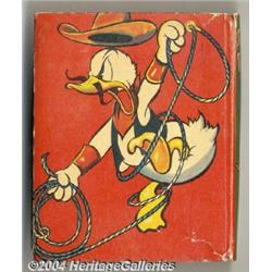 <B>Donald Duck Hunting for Trouble Big Little Book #1478 (Whitman, 1938) Condition: VF.</B></I> Ever wonder what Donald Duck would look like with a mustache? Here's your chance to find out, as the Duck dons a cowboy disguise for this BLB's cover and back cover illustrations. The inside story actually appears to be more of a domestic drama starring Donald and Mickey's nephews Morty and Monty. This copy is very nice with minimal wear; however, there are a couple of small tears along the spine edges top and bottom of the back cover. Inside pages are still fresh; the book appears to have never been opened fully, leaving a perfect inner spine. Al Taliaferro art; 432 pages. Overstreet 2004 FN 6.0 value = $75.; VF/NM 9.0 value = $150. <BR><BR><B>Important notice:</B> Heritage usually auctions material at the rate of 200-250 lots per hour. On some occasions eBay Live bid software or the Internet may not be able to keep up with the pace of the auction. We recommend placing a realistic absentee bid now as insurance to avoid disappointment. Occasionally the auctioneer may eliminate or reject an eBay Live bid, and the auctioneer may also reopen a lot after the close of the eBay live bidding (usually because we missed an audience bid), and may reject your bid even if it shows you as the winning bidder. By bidding via eBay Live, you agree that Heritage may award the lot to another bidder at its sole discretion under the circumstances described above or any other reasonable circumstances. Since eBay bids are not shown to us until we open the lot on the floor, we treat those bids just like floor bids. In most cases the floor responds before the eBay bid is presented to us, due to Internet lag time, so for consistency we have made it a policy that floor bids are always considered first over tie eBay live bids. Also please note that all Heritage lots purchased through eBay Live carry a 20% Buyer's Premium. Please make sure you read the Terms and Conditions before you bid.