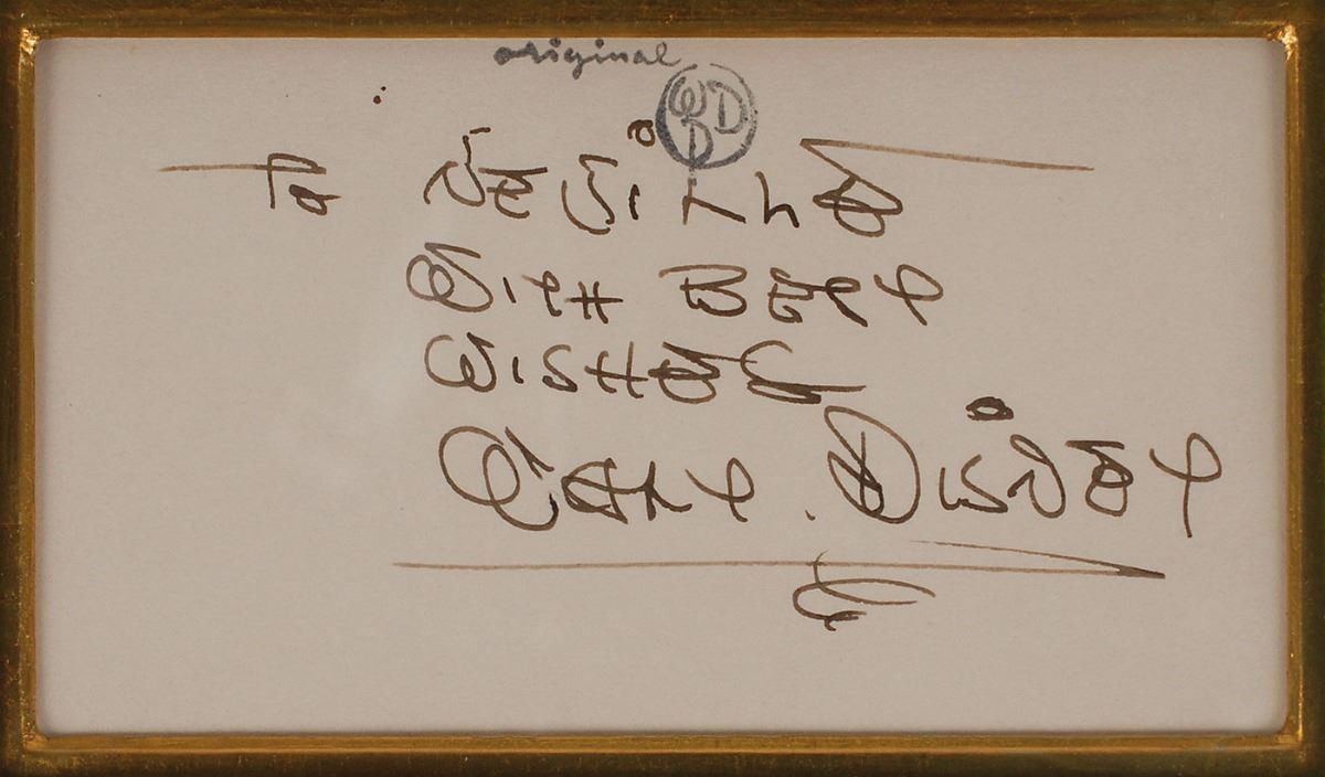All lots sold by RR Auction are accompanied by an Auction Certificate (“AC”). On any lot presented with an AC issued by RR Auction, the certification is only as to its attribution to the person or entity described or to the lot's usage and only as explicitly stated therein (the “Certification of Authenticity”), to the exclusion of any other warranties, express or implied, including but not limited to those pursuant to the Uniform Commercial Code. The Certification of Authenticity inures only to the original Bidder (as shown in RR Auction's records). Bidder may not transfer, assign, or otherwise convey the Certification of Authenticity, and such purported transfer, assignment, or conveyance shall be null and void. The Certification of Authenticity is valid from date of the Auction in which Bidder was awarded the lot (the “Auction Date”) until five (5) years after the Auction Date, without exception.