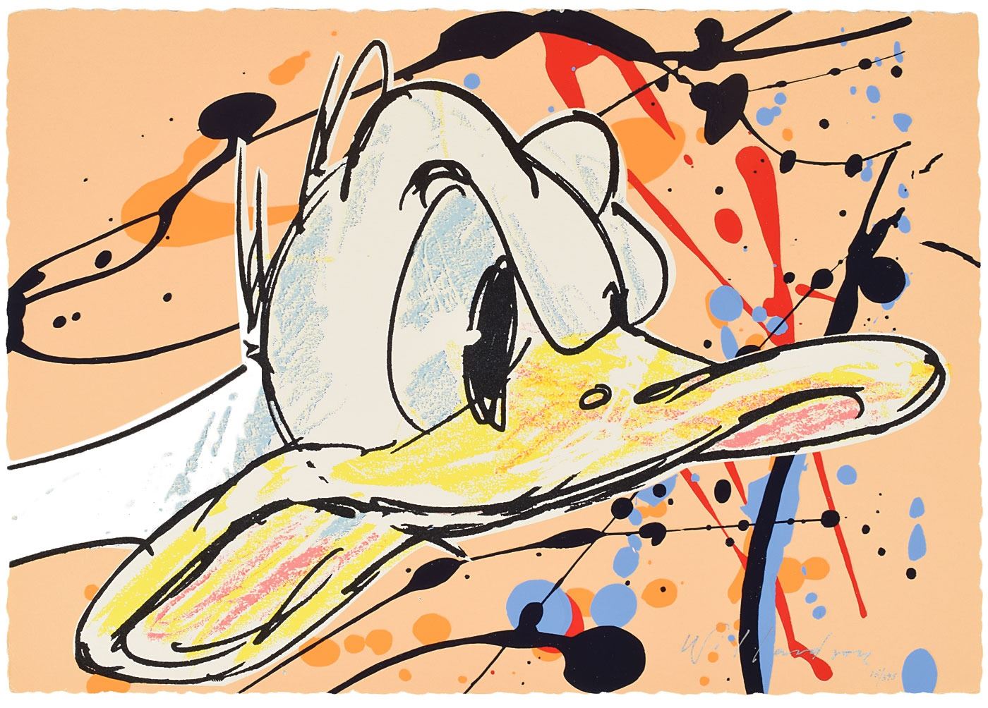 Color limited edition 18 x 12.5 serigraph of Donald Duck by David Willardson entitled 'The Duck Has Pluck,' numbered 15/395, signed in silver ink, "Willardson." In fine condition.