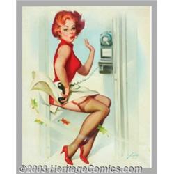 Donald "Rusty" Rust - Original Pin-up Art (c.1955).Vintage painting by Rust, as indicated by the earlier form of his signature, "Rusty."Oil on canvas, framed (31 x 24.5), sight size approximately 29.5 x 23.5. Signed lower right. keywords: Valkyrie Press artist, A.S. Barnes & Co. artist, World of Yesterday artist, Pin-up artist, Ringling Museum of the Circus artist, Norman Rockwell Museum artist, Reader's Digest illustrator, illustrator, painting Important notice: Heritage usually auctions material at the rate of 200-250 lots per hour. On some occasions eBay Live bid software or the Internet may not be able to keep up with the pace of the auction. We recommend placing a realistic absentee bid now as insurance to avoid disappointment. Occasionally the auctioneer may eliminate or reject an eBay Live bid, and the auctioneer may also reopen a lot after the close of the eBay live bidding (usually because we missed an audience bid), and may reject your bid even if it shows you as the winning bidder. By bidding via eBay Live, you agree that Heritage may award the lot to another bidder at its sole discretion under the circumstances described above or any other reasonable circumstances. Also please note that all Heritage lots purchased through eBay Live carry a 20% Buyer's Premium. Please make sure you read the Terms and Conditions before you bid.