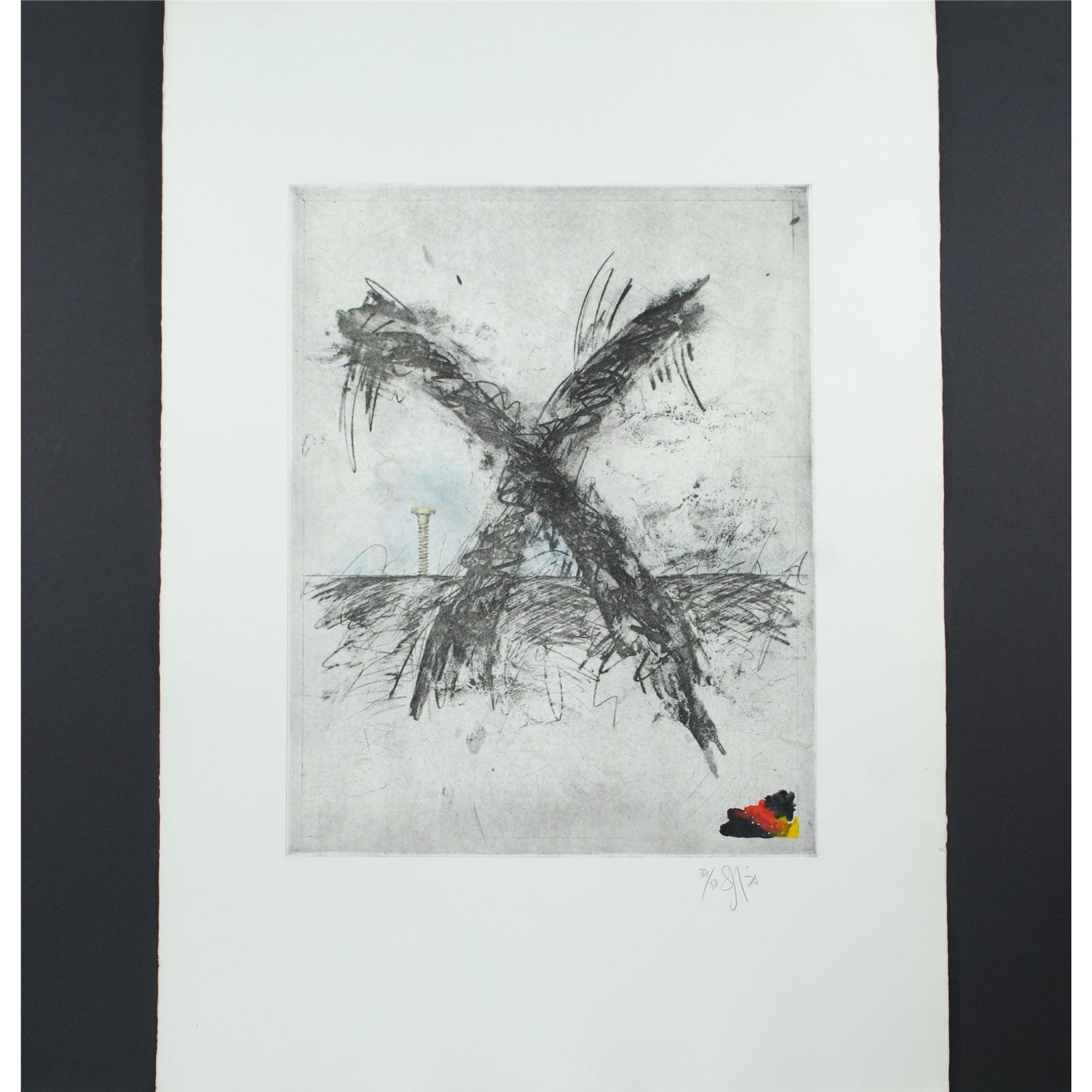 Donald Saff's "Screw (Color)" limited edition print signed and numbered 37/50. This is of an 'X', with a screw half way into the black line crossing the piece. This piece is in very good condition, and has never been framed. Image- 24" x 18 1/2". Paper- 39" x 28"