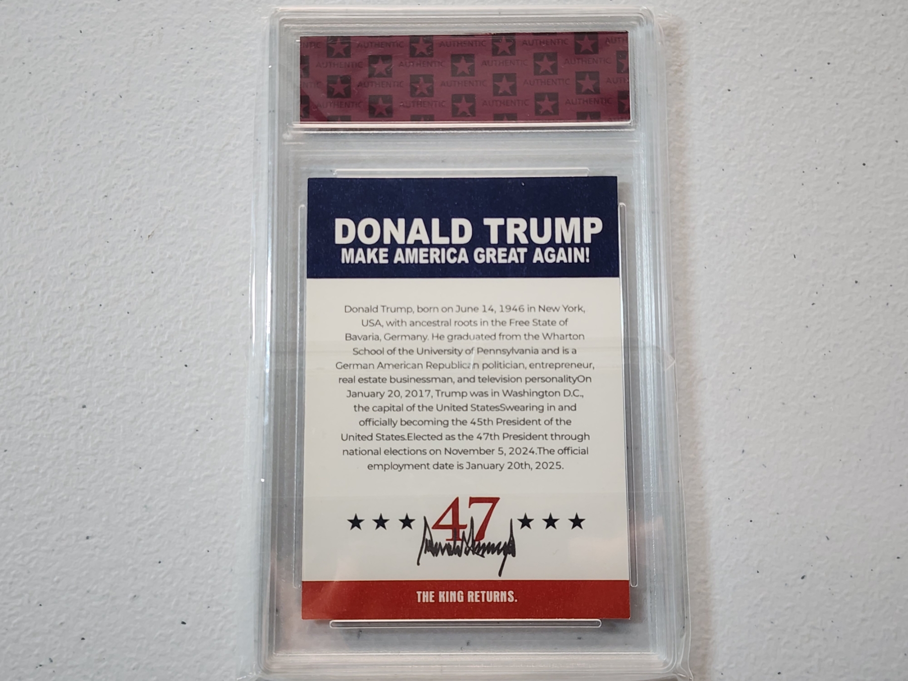 Donald Trump 47th President "The King Returns" Collectible Trading Card - Mint Condition in Holder