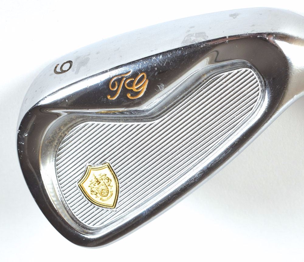 Donald Trump’s personally-owned and -used set of seven custom-made TaylorMade forged irons, 3–9, gifted to the head pro at Trump National Golf Club in Washington, DC, after the 2013 Junior PGA Championship. The clubheads are engraved “TG” for ‘Trump Golf,’ and have inset gold “Trump” coats of arms, and the irons have matching True Temper Dynamic Gold shafts with black-and-white Crossline Lamkin grips. Trump used these irons during his visits to Trump National Golf Club in Washington, DC, in 2009–2010, an estimated 15 to 20 times. In overall fine condition, with expected light signs of use.